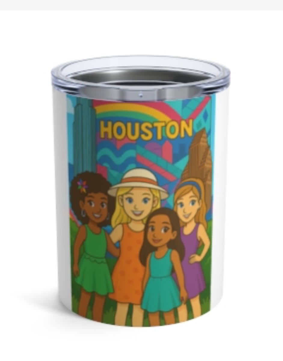 This 10oz stainless steel tumbler is wrapped in colorful artwork from the Glam Squad Goes to Houston book — making it perfect for stylish little ones, moms on-the-go, or anyone who loves bold, fun drinkware.