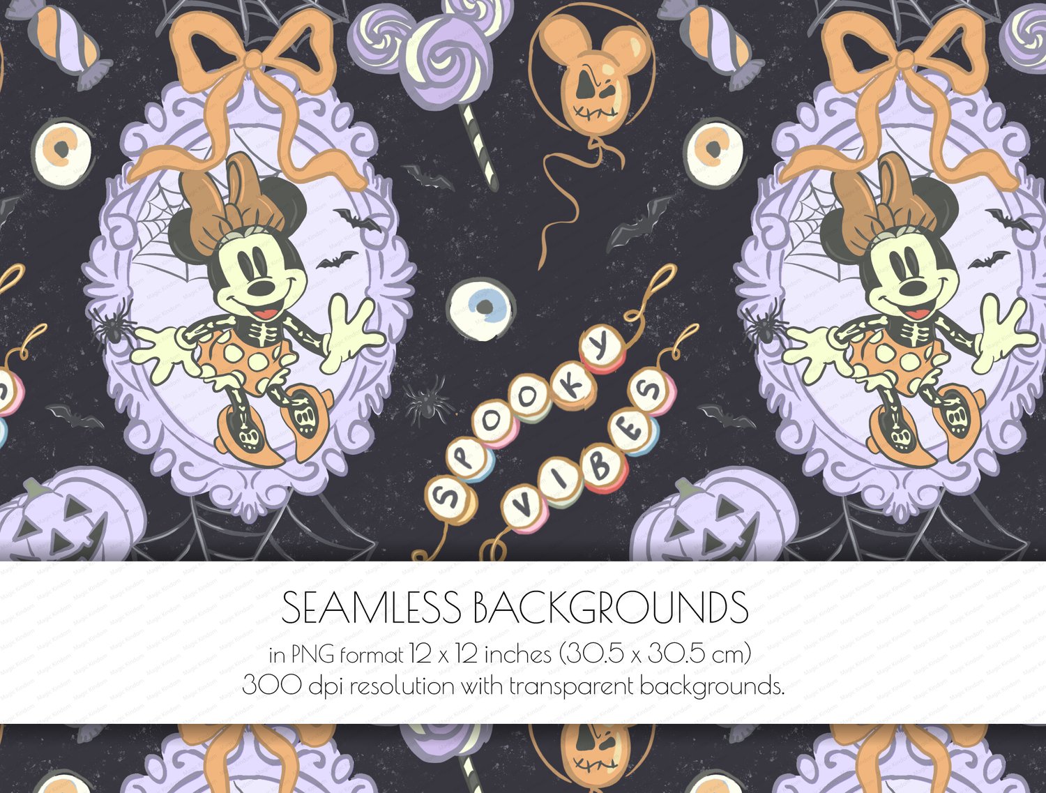 1 Halloween Minnie Mouse Seamlessbackground PNG format 12 x 12 inches (30.5 x 30.5 cm) 300 dpi resolution .