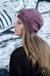 Shown in Malabrigo Arroyo shades ‘Pearl’ & ‘Jupiter’ [335yd/306m per 100g; 100% Superwash Merino]Shown in size 22in/56cm on model with 21.75in/55.25cm circumference head