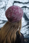 This Hat is named for Hermes, the Greek god of travel who bridged the worlds of the mortal and the divine. The colourwork strands of Hermes appear fluid, a transmission of stitches from brim to crown.