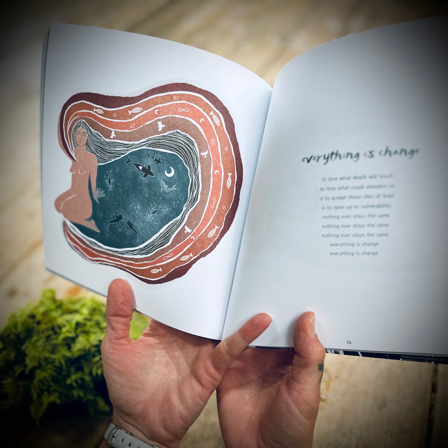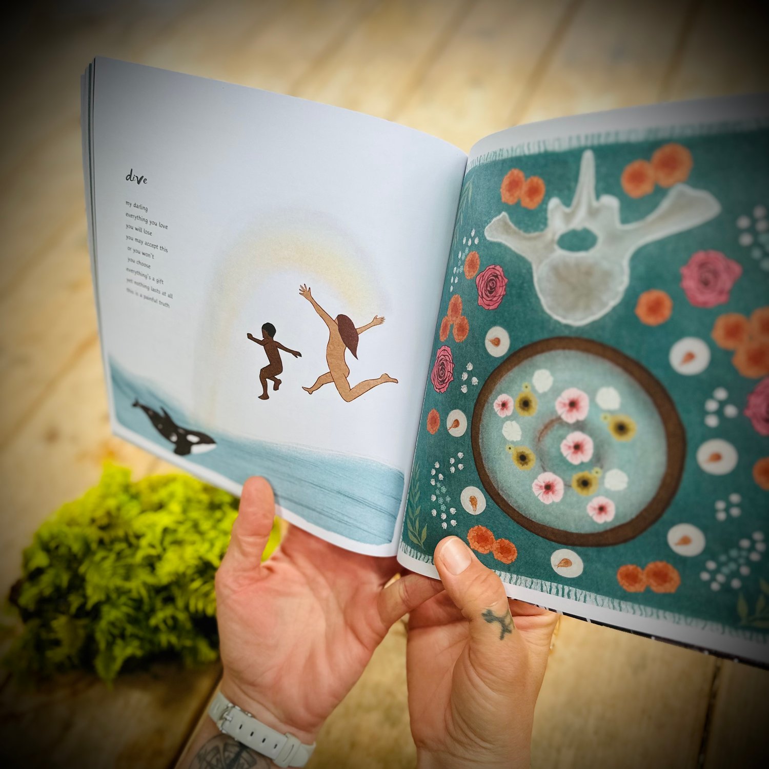120 pages. matte print with illustrations by Jessie White. With booklet contributors including Francis Weller, Leticia Nieto, Aaron Johnson and Linda Thai. It includes my own initiation of grief and tending to communal grief, the songs, lyrics, stories behind the songs. I began drafting it as all my songs books have been, with the origin stories of the songs, how and where they came through and the lyrics... but as I was being worked by the material - the channel opened and all the sudden I realized (I?) was writing this for those of you who’ve approached me with the question, “How do we hold our communities in grief without having access to local grief tenders?” And the answer that revealed themself to me/us was: it is not the grief tender who holds the community, it is the community who holds the community. And thus, a flood of invitations, anecdotes and love flowed through into these pages.