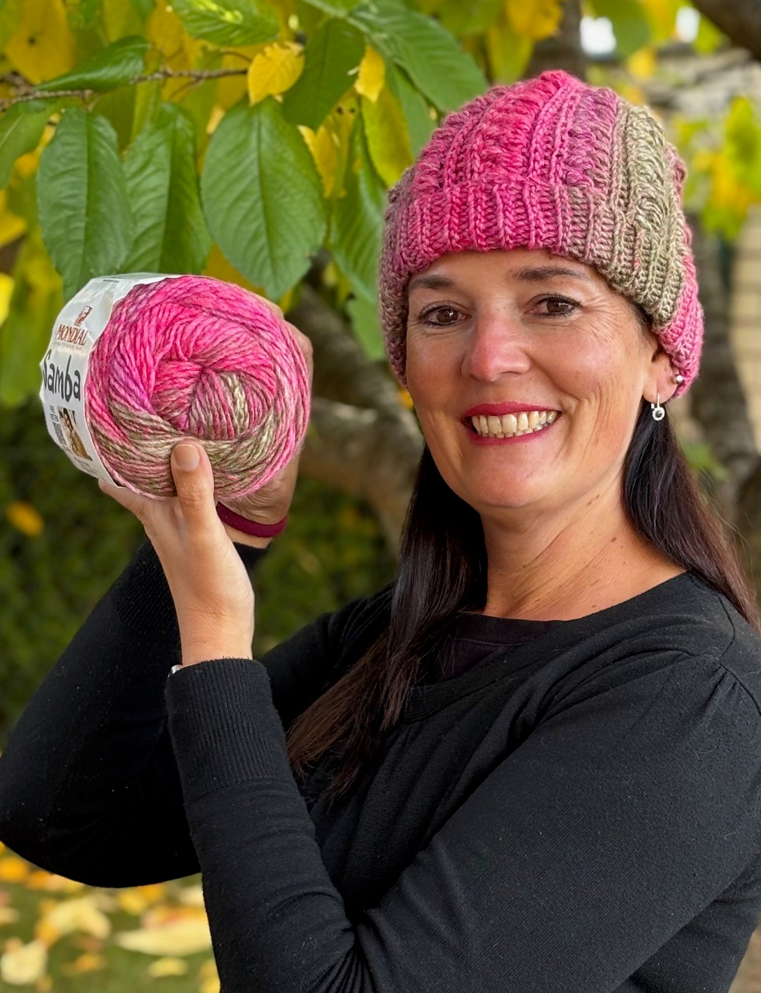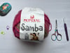 Prepare for autumn and winter with this beautiful, cozy hat! The pattern uses the luxurious Samba yarn (a blend of virgin wool and microacrylic), guaranteeing both warmth and softness. The combination of khaki green and pink shades provides a modern touch that perfectly complements the rich colors of the fall season. However, you can easily crochet this hat using any other yarn and in any colors that match your personal style.