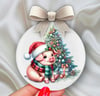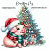 Beautiful Christmas pig, watercolour with Christmas tree. For sublimation or print. PNG with transparent background