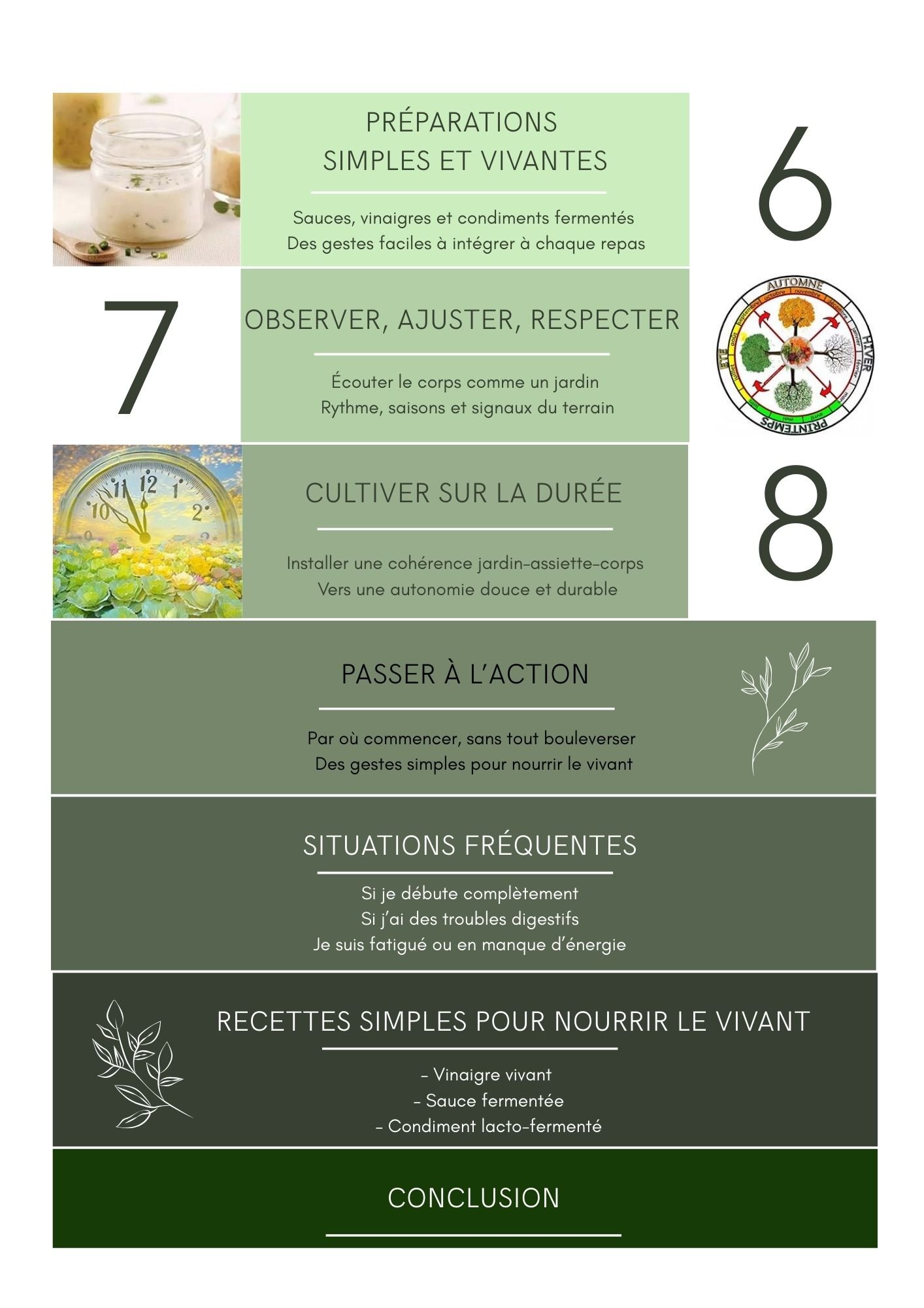 - vinaigres vivants, sauces fermentées, condiments du quotidien