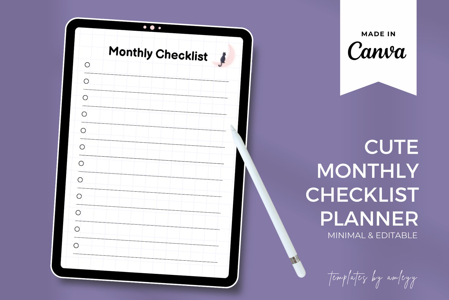 Cute Monthly Checklist Planner Canva Template | Editable Monthly To Do List | Printable & Digital Planner