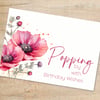 Printable Poppy Birth Month Flower Card, Digital Floral Happy Birthday Card with Poppies