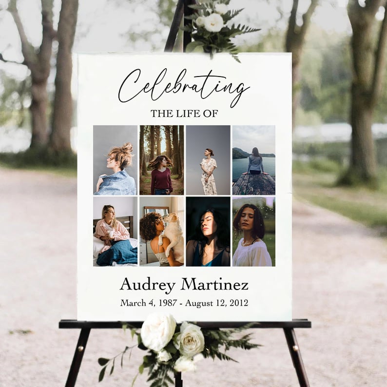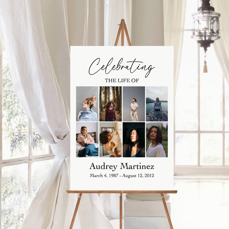 EDITABLE Memorial Service Sign | Funeral welcome sign l Celebration of Life | Collage Memorial Sign | Forever in our Hearts | Funeral Decor