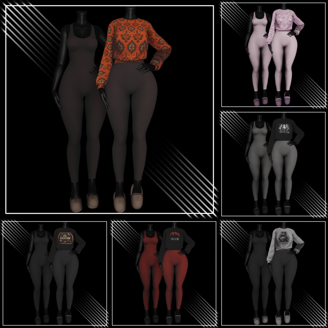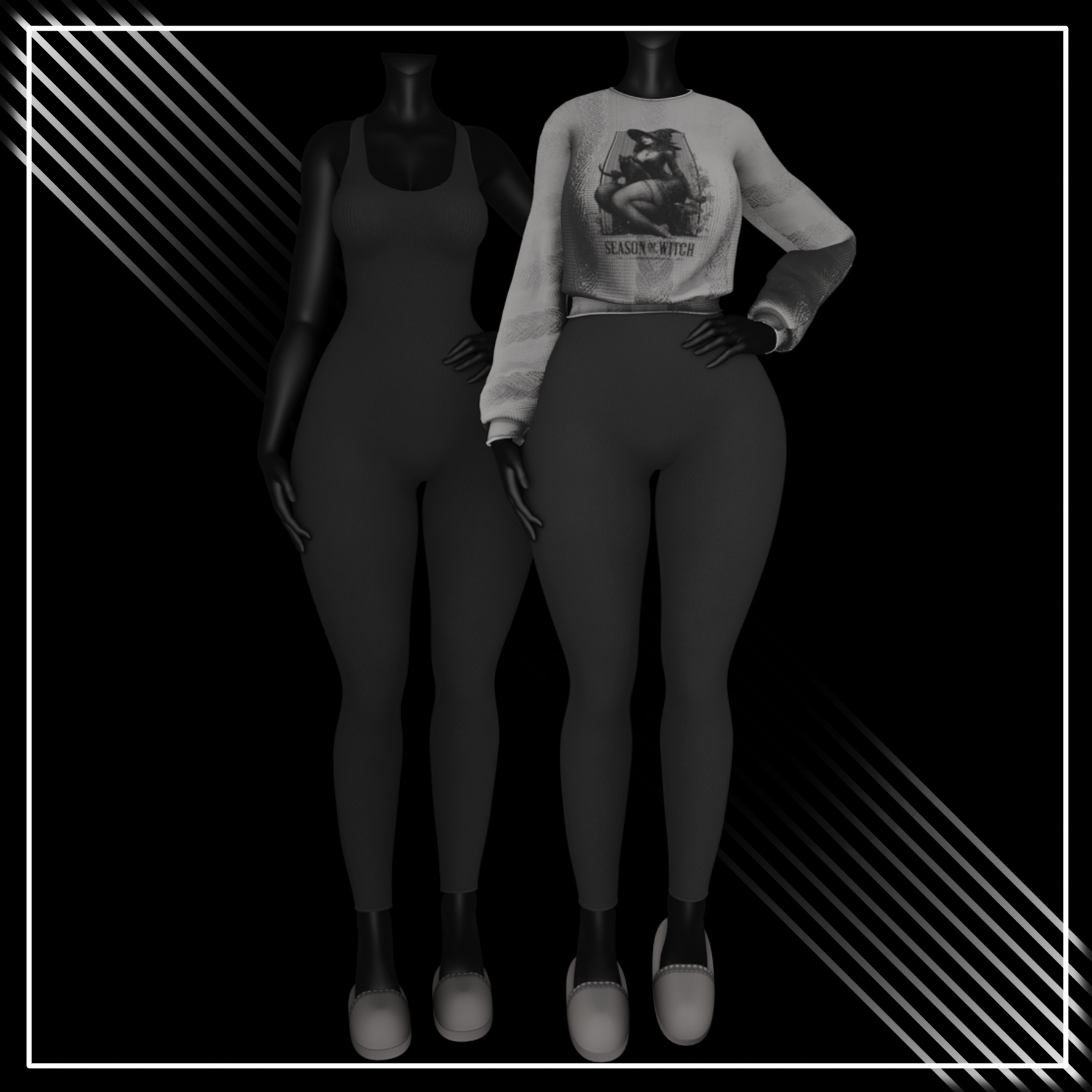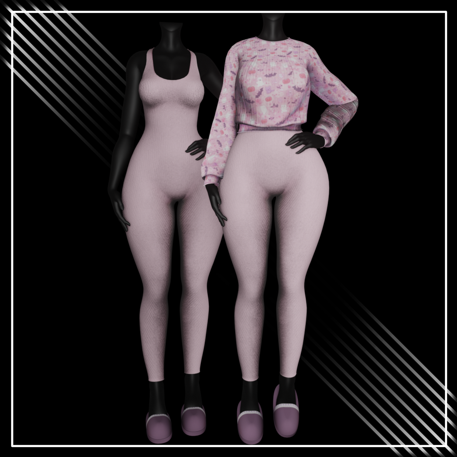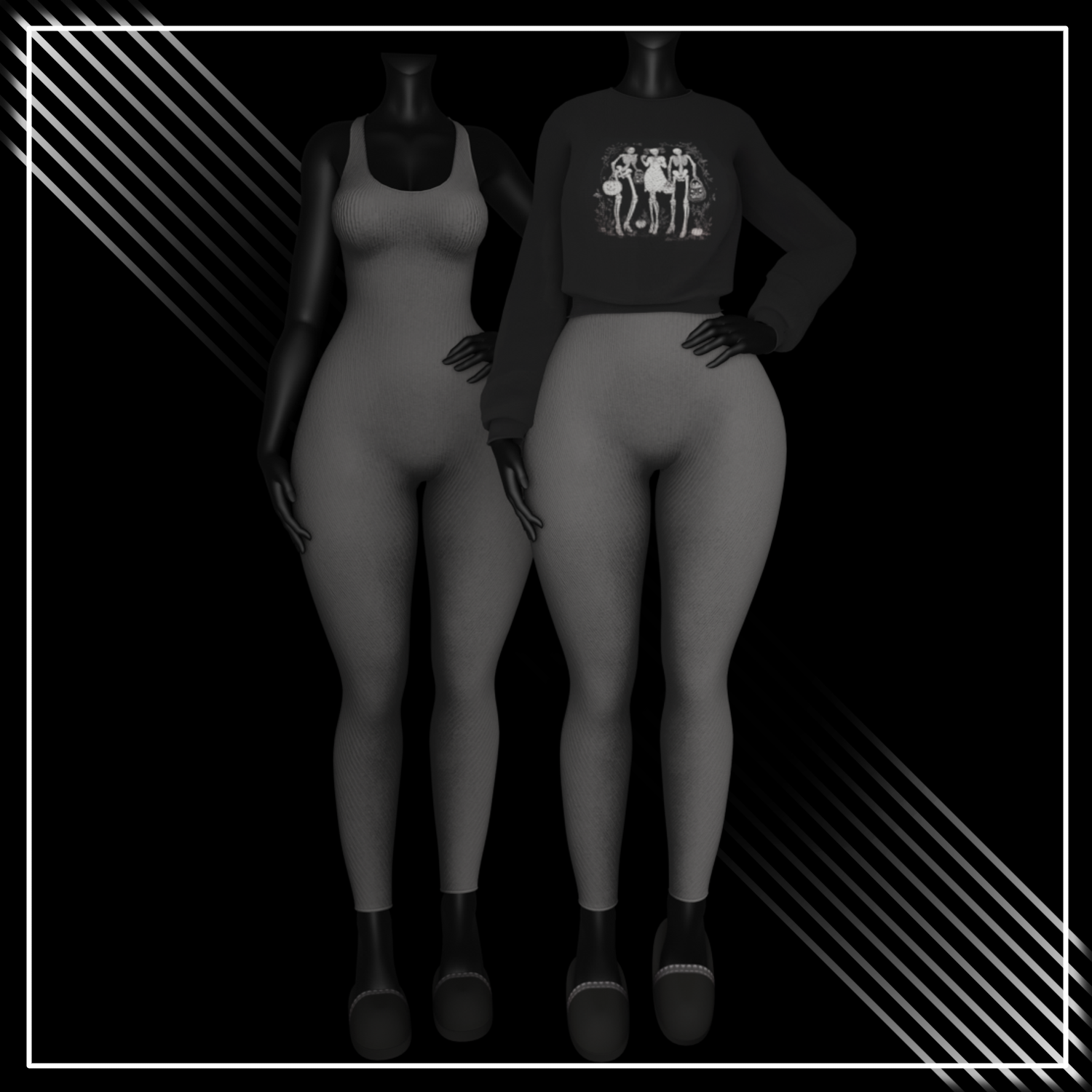 FULLY RIGGED Sweater, Bodysuit, and Slippers, fitted and weighted to Zinpia's VRBase (EGirl) (linked below)