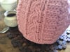 A modern take on a tea cozy fused with the tradition of cabling. Homy and fresh all at once.