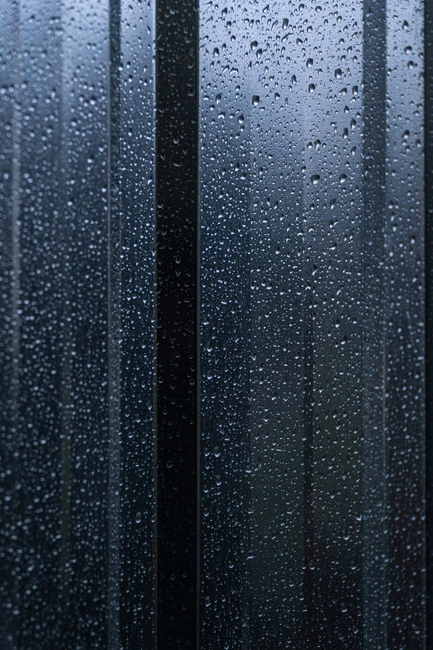 Keywords: rain, raindrops, rainy window, water texture, moody background, dark blue, calm aesthetic, minimal design, abstract texture, rainy day, glass surface, photography backdrop, digital art background, cinematic mood