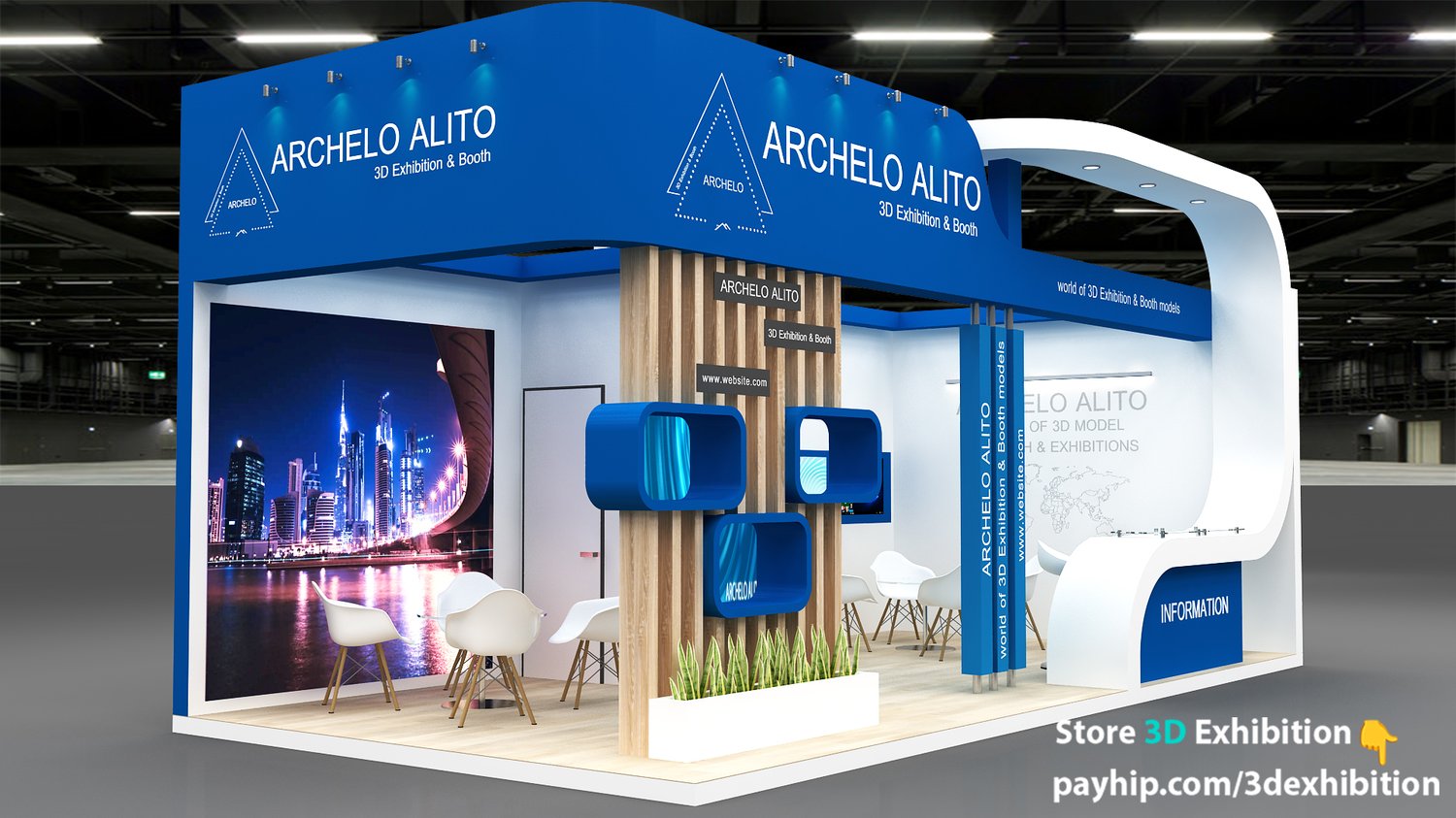 include design all necessary area in Exhibition and Booth Such as Vip and Storage and Counters and also Stand for products