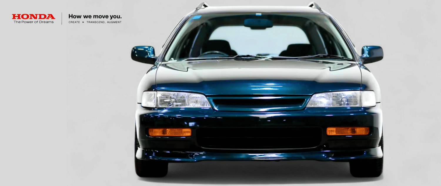 1996 Honda Accord Poster -- Create > Transcend, Augment Logo -- Station Wagon -- Front View -- Dark Cyan