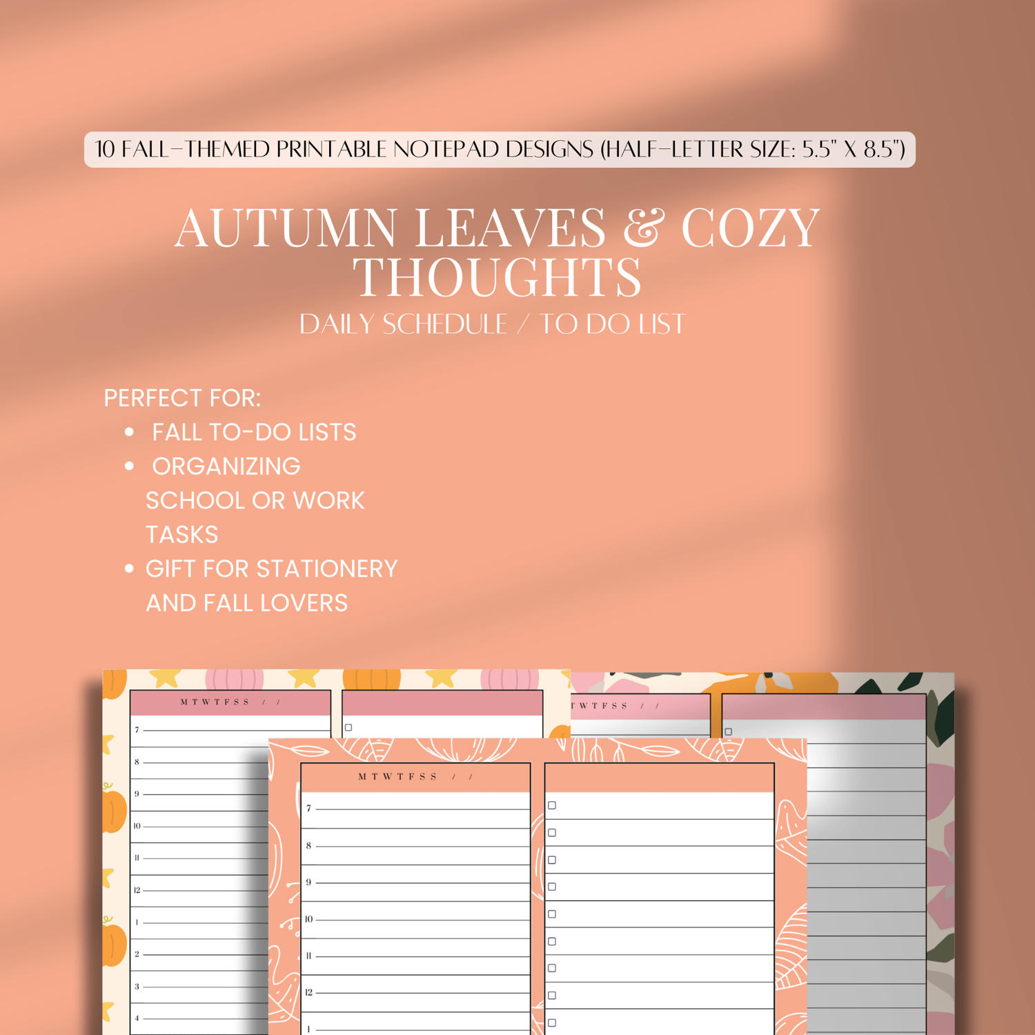 - 10 Fall-Themed Printable Notepad Designs (Half-Letter Size: 5.5" x 8.5")