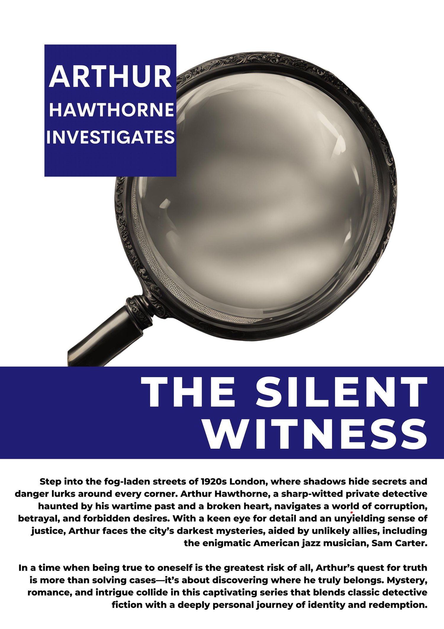 Step into the fog-laden streets of 1920s London, where shadows hide secrets and danger lurks around every corner. Arthur Hawthorne, a sharp-witted private detective haunted by his wartime past and a broken heart, navigates a world of corruption, betrayal, and forbidden desires. With a keen eye for detail and an unyielding sense of justice, Arthur faces the city’s darkest mysteries, aided by unlikely allies, including the enigmatic American jazz musician, Sam Carter.