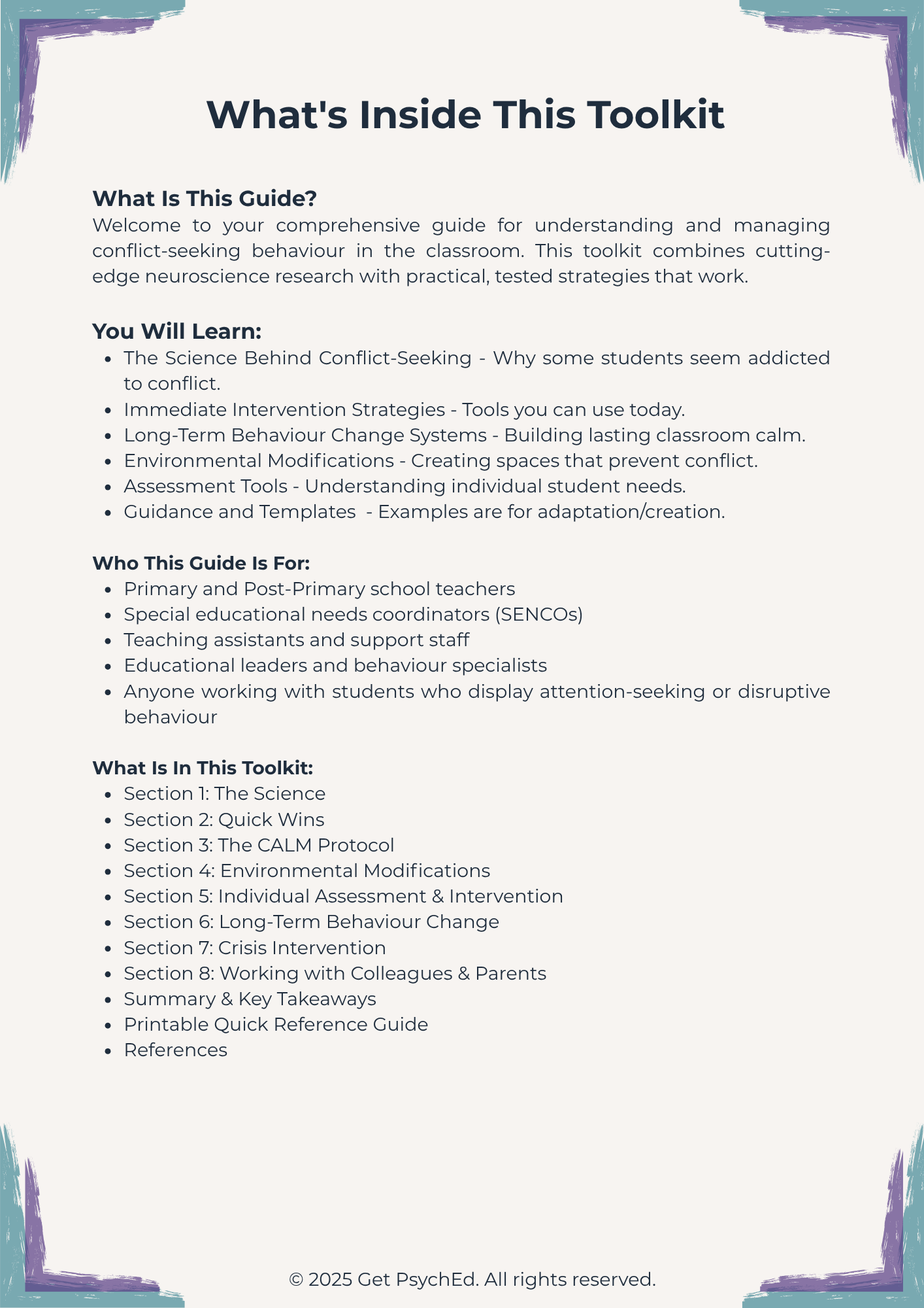 Created by a Chartered Educational Psychologist with 20+ years of experience, this evidence-based toolkit transforms conflict-seeking behaviour using neuroscience-backed strategies.
