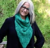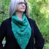 blocked); A different gauge will affect drape, yardage required and size. Triangle tip of cowl is used as a swatch. See Swatch instructions.