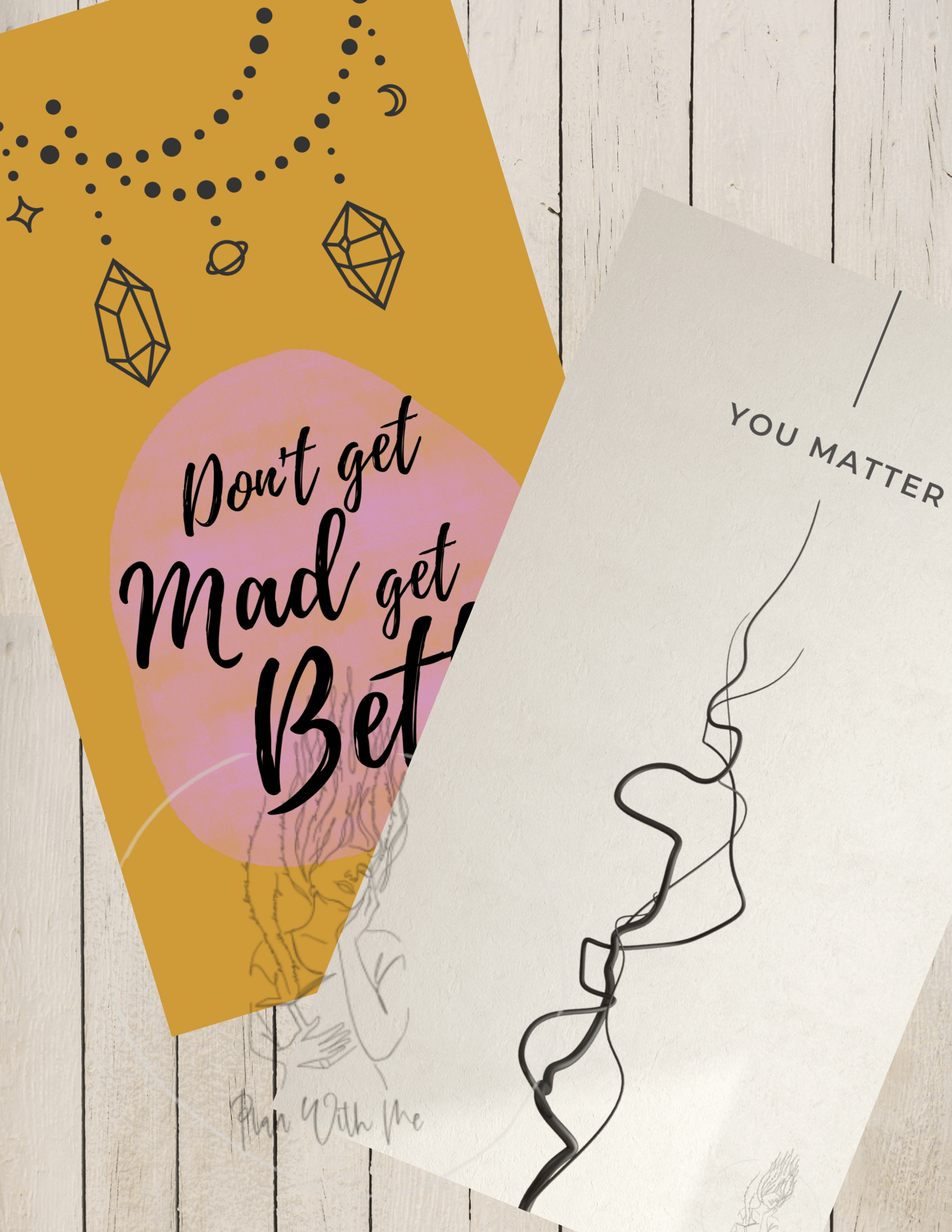 The best revenge is to glow up baby. Remind yourself of that every step of your glow up journey with these two lovely wallpapers for one price! Our first reminds us of my motto that getting mad and getting even do nothing for ourselves, but making sure we do better keeps attention focused on ourselves and how we're going to not only make it through, but come out better than we were. This ornge and purple themed beauty has crystals to help focus your intentions to do you, boo! The second wallpaper comes from the idea that matter is never created or destroyed, only changed. Moving through any adversity in life never will destroy us just change how we navigate through it. Just because you're burned doesn't mean youre down and out. it means you've adapted like smoke, moving around the obstacles in your life and reminding yourself that, no matter what someone else says, you know you matter. Because you do.