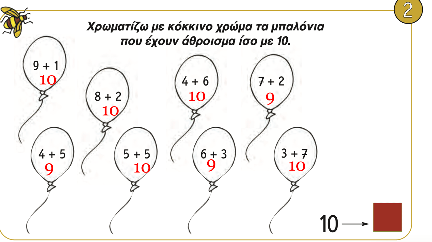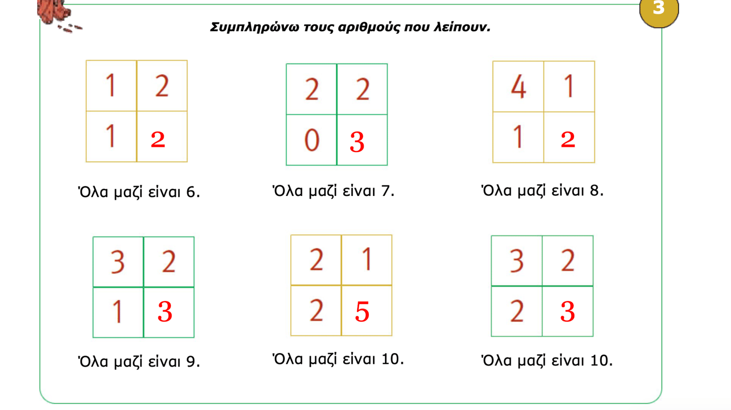 Μέσα από εικόνες, παραδείγματα και πρακτικές δραστηριότητες, τα παιδιά κατανοούν ότι κάθε αριθμός μπορεί να συμπληρωθεί με έναν άλλο για να φτάσει στο 10.