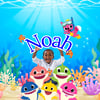 Baby Shark, back-to-school, editable Canva design, customizable, personalized photo, fun, playful, vibrant colors, underwater theme, digital mockup, classroom decoration, children's song, education, engaging design, cheerful, personalized graphics.