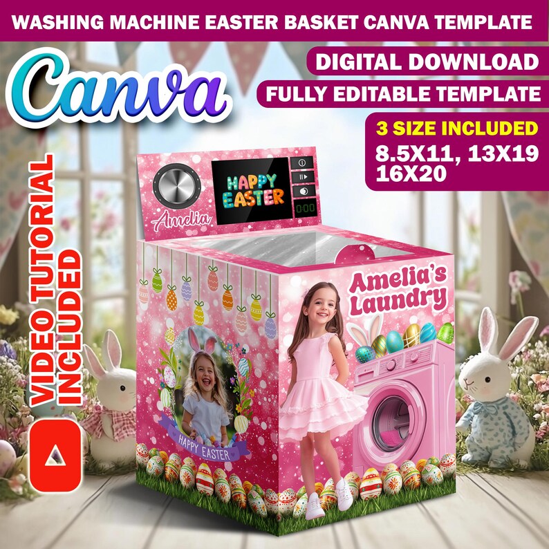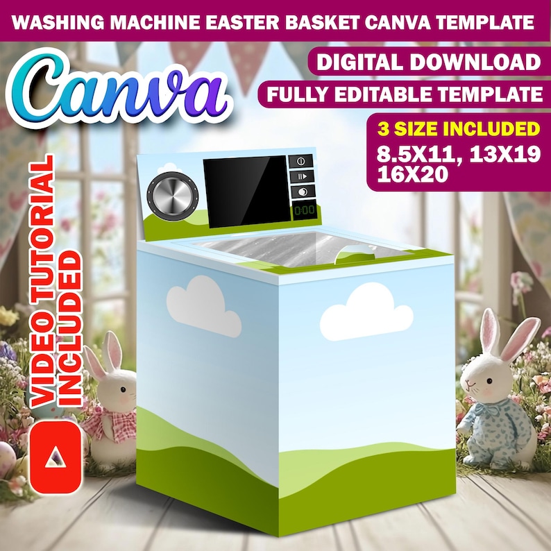 2X Front & Top Load Washing Machine Gift Box Canva Template, Editable Foam Board Easter Basket Gift Box, Birthday DIY Gift Laundry Box