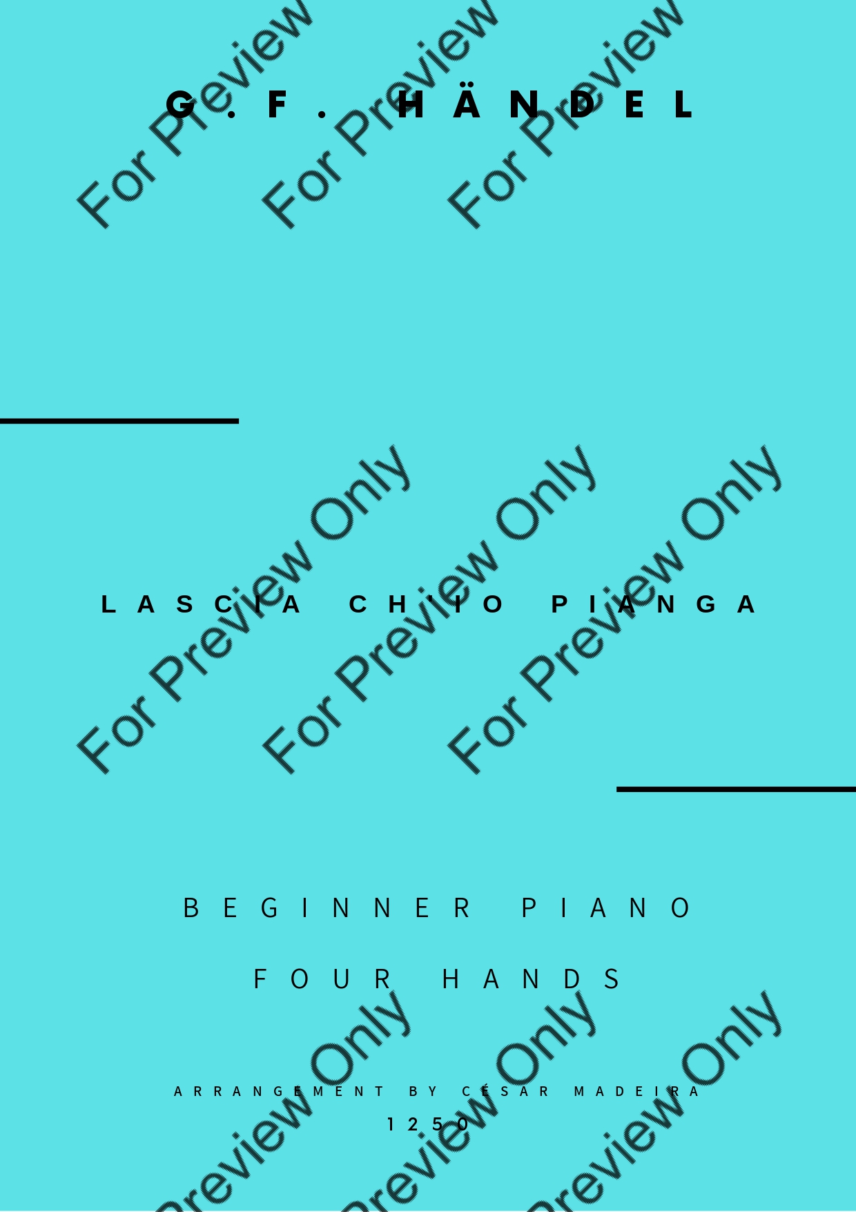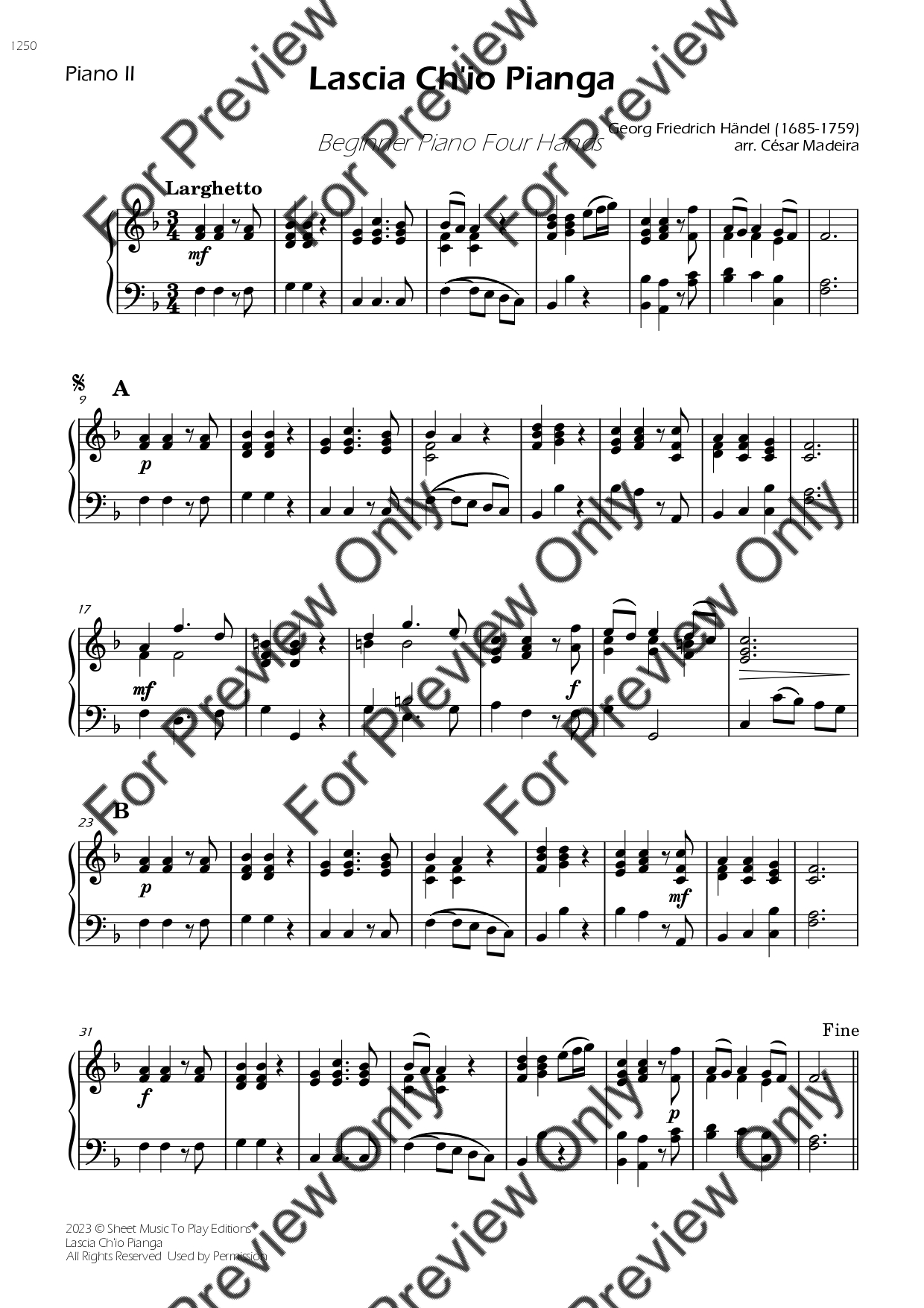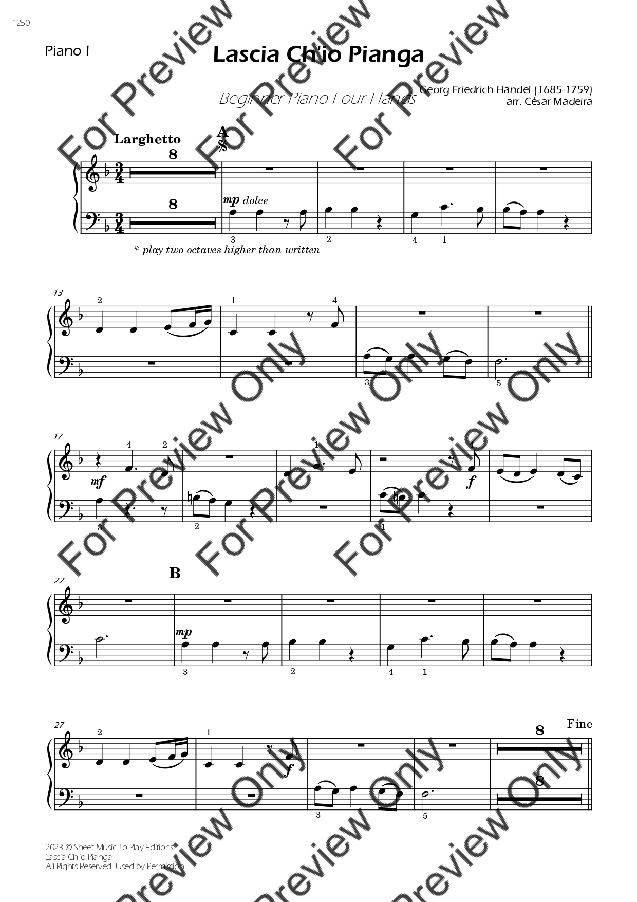 Lascia Ch'io Pianga by Georg Friedrich Handel. Arrangement for Easy/Beginner Piano Four Hands. With Full Score and Individual Parts. Have fun!