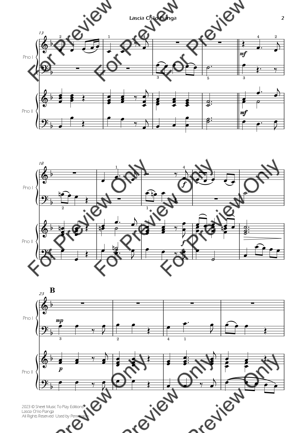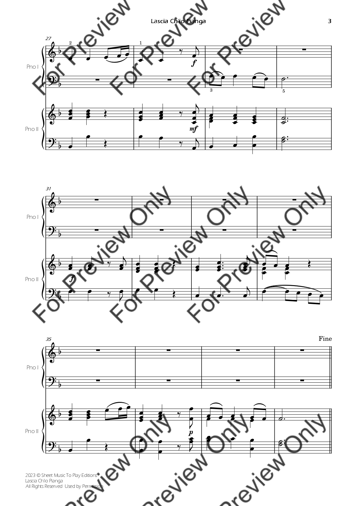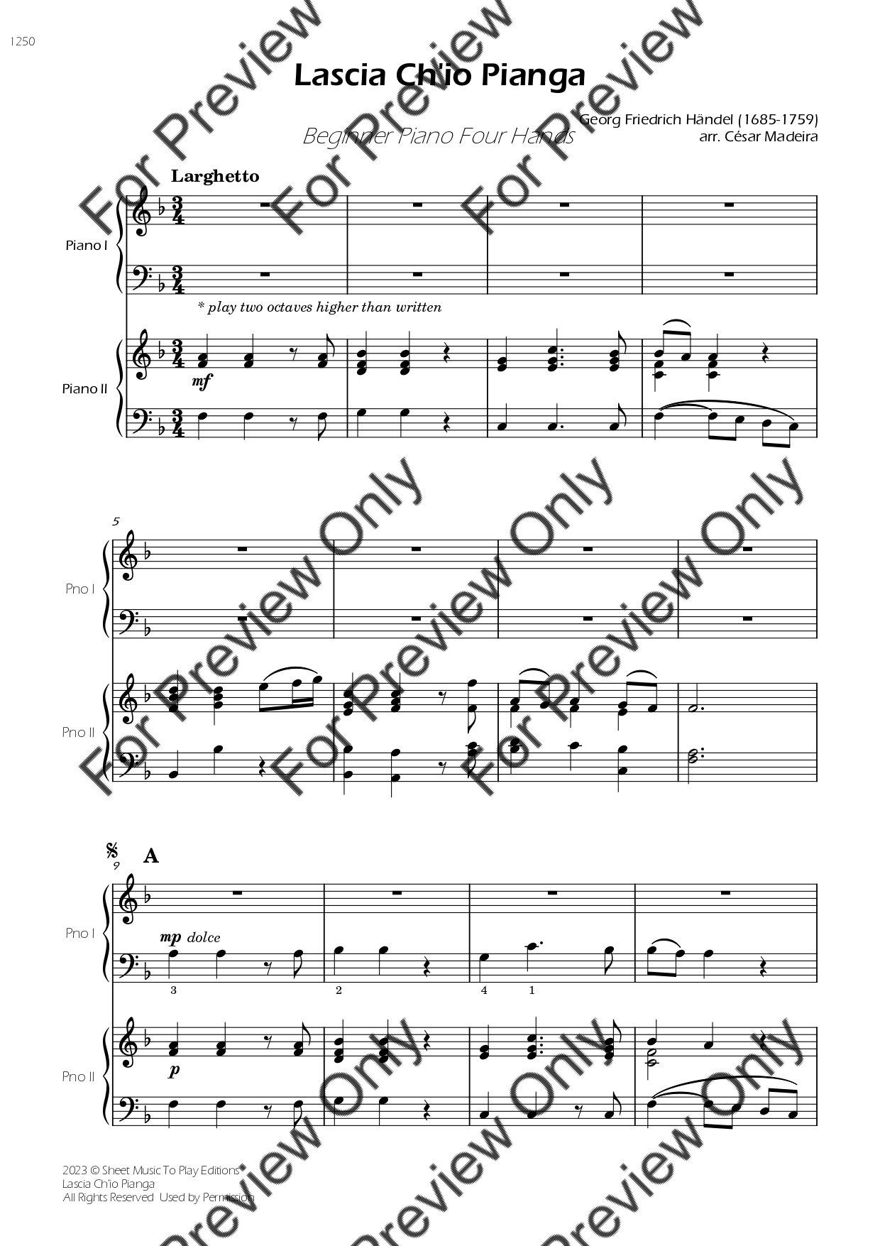 Lascia Ch'io Pianga by Georg Friedrich Handel. Arrangement for Easy/Beginner Piano Four Hands. With Full Score and Individual Parts. Have fun!