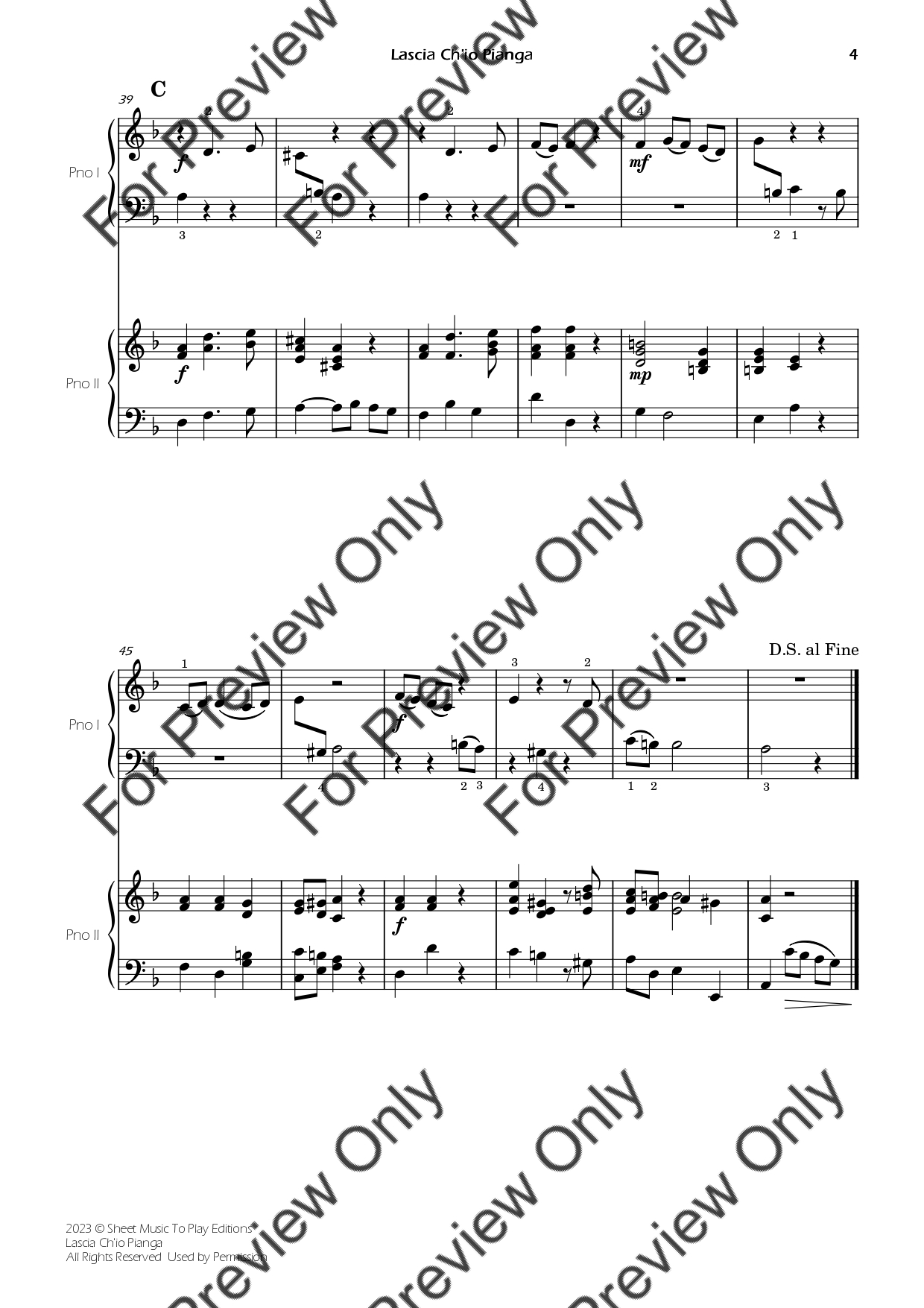 Lascia Ch'io Pianga - Easy Piano Four Hands