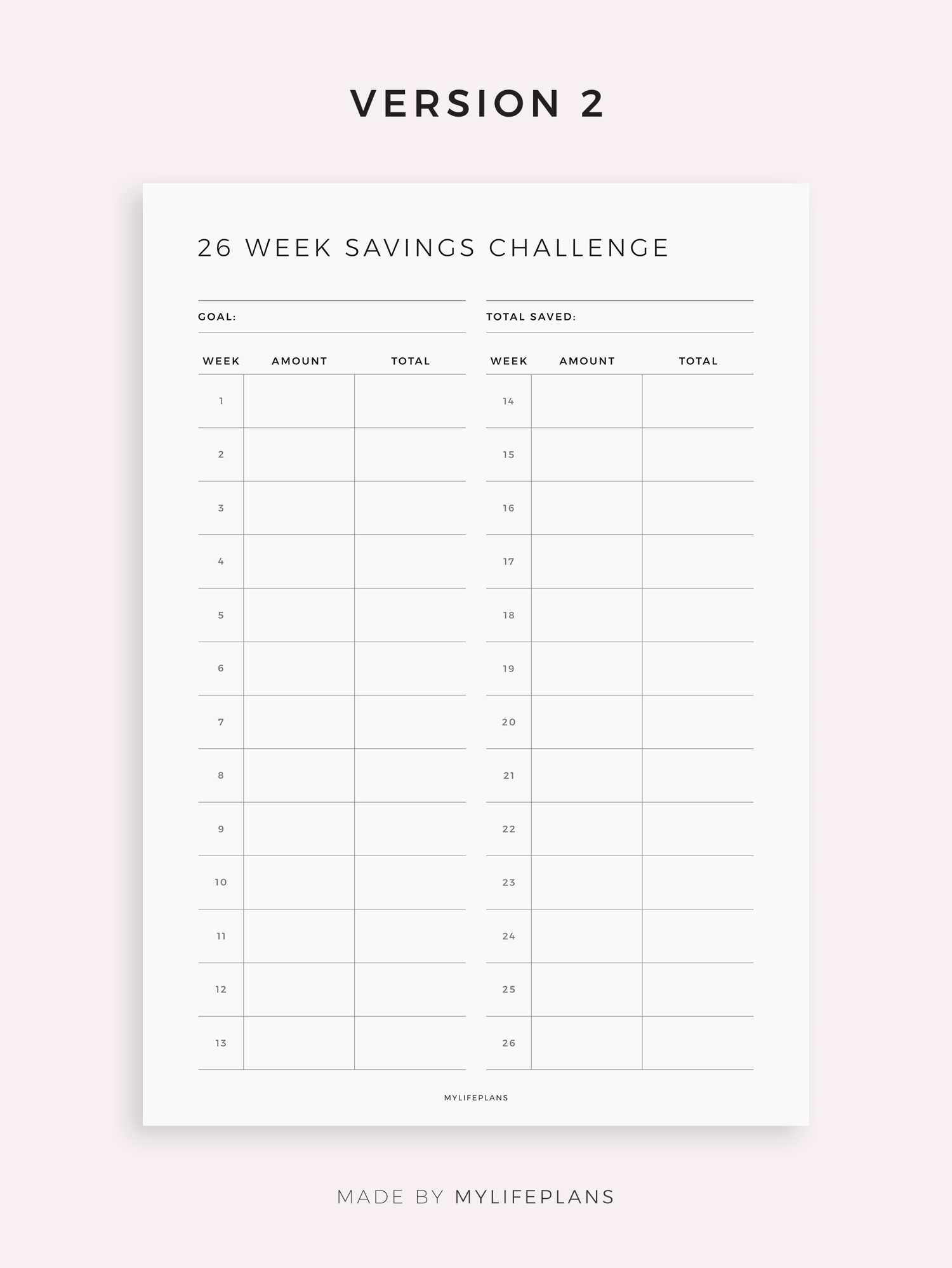26 Week Savings Challenge Template for Remarkable, Supernote, Kindle Scribe, Boox, Kobo