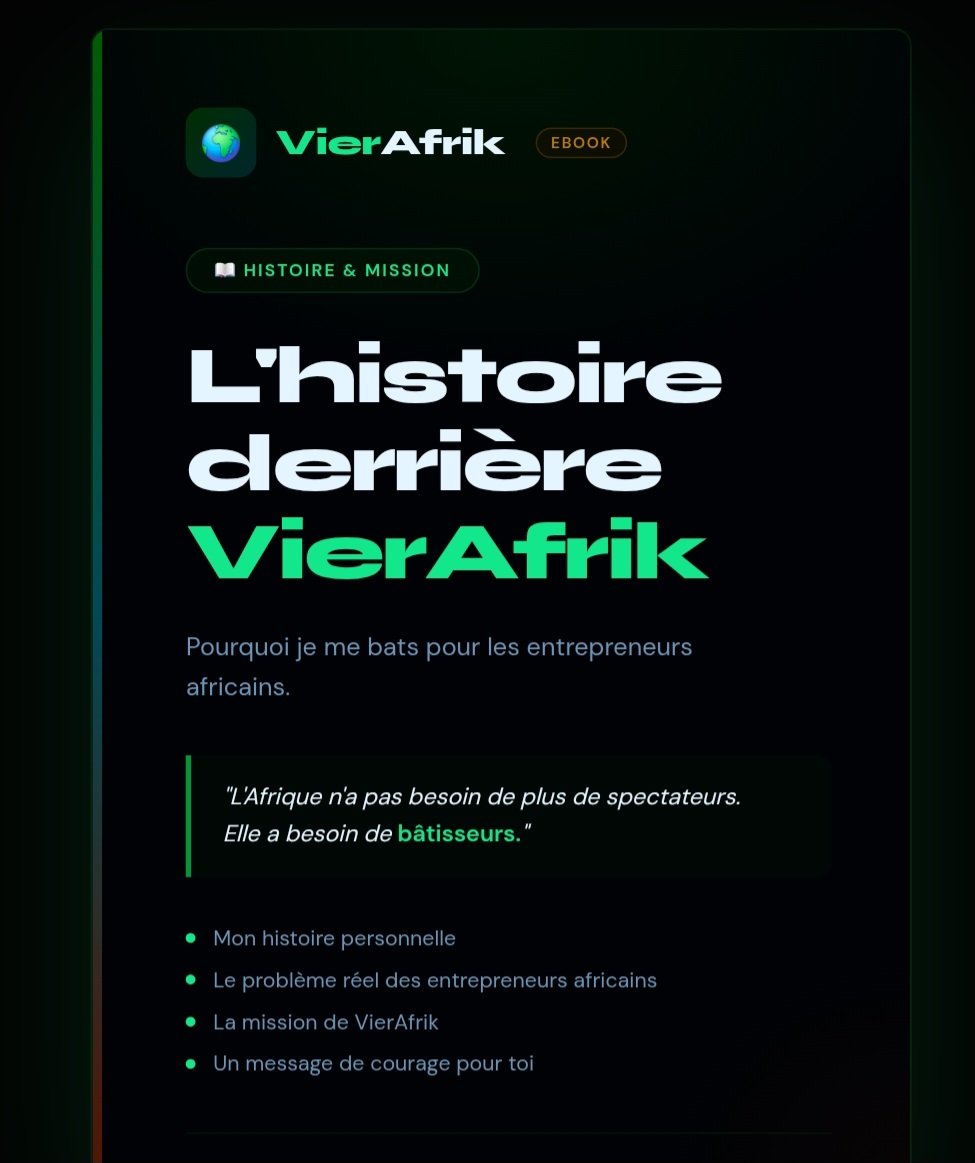Ce que tu vas découvrir : ✅ Mon histoire personnelle ✅ Le vrai problème des commerçants africains ✅ La mission de VierAfrik ✅ Un message de courage pour toi