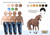 three different skin tones and three eye colours.