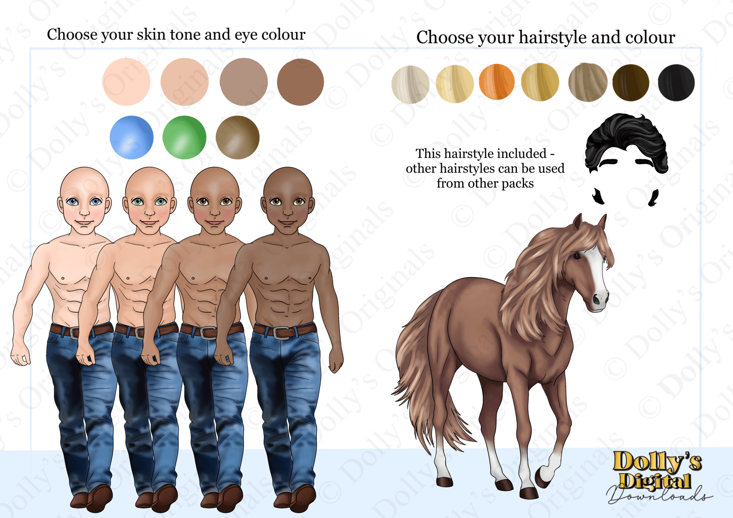 1 hairstyle included in 7 colours, hairstyles from other packs can be used.
