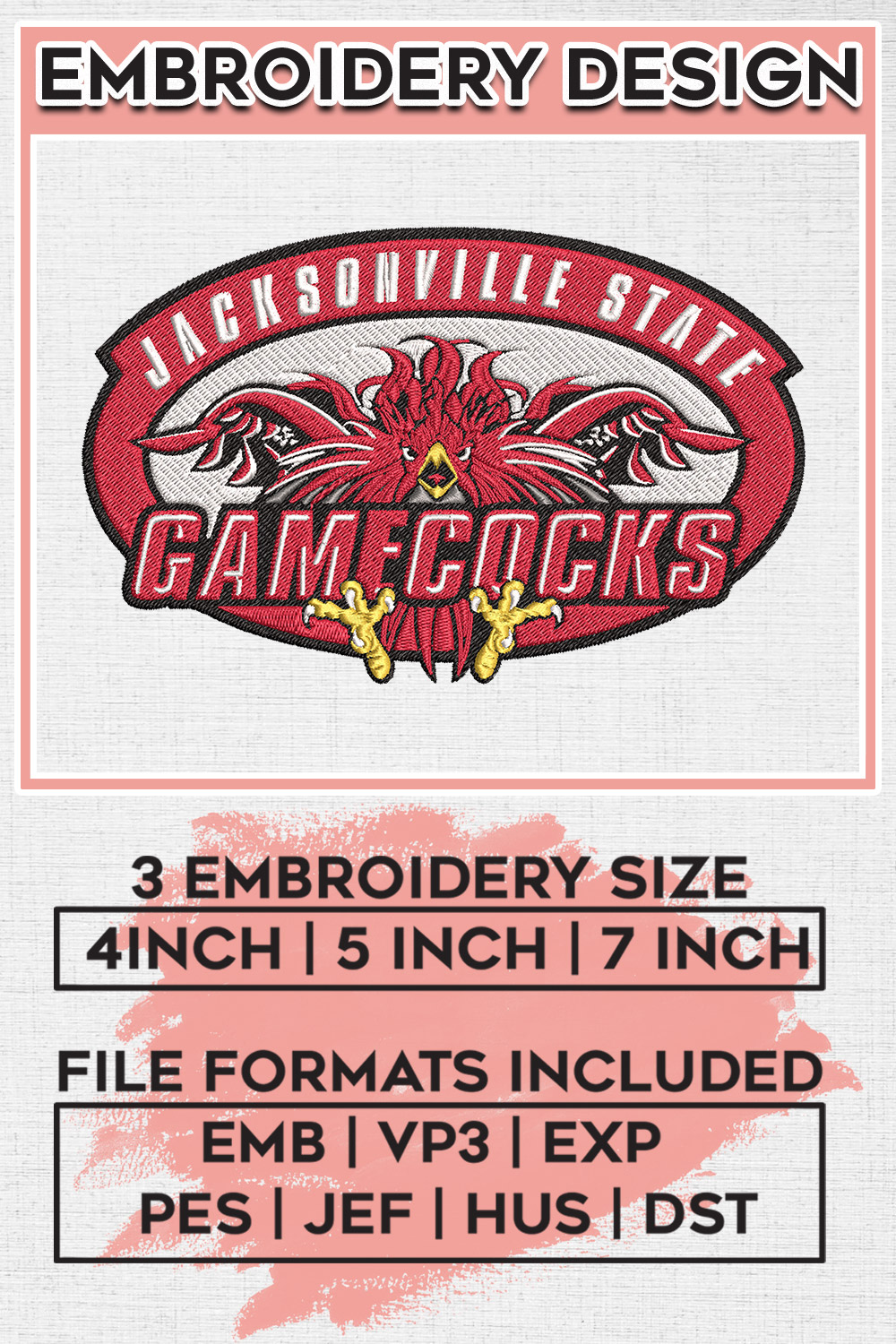 Jacksonville State Gamecocks Logo Embroidery Design Files, NCAA Jacksonville State Gamecocks Machine Embroidery Designs, NCAA Logo Machine embroidery designs, Ncaa JSU Gamecocks Logo, Digital Download