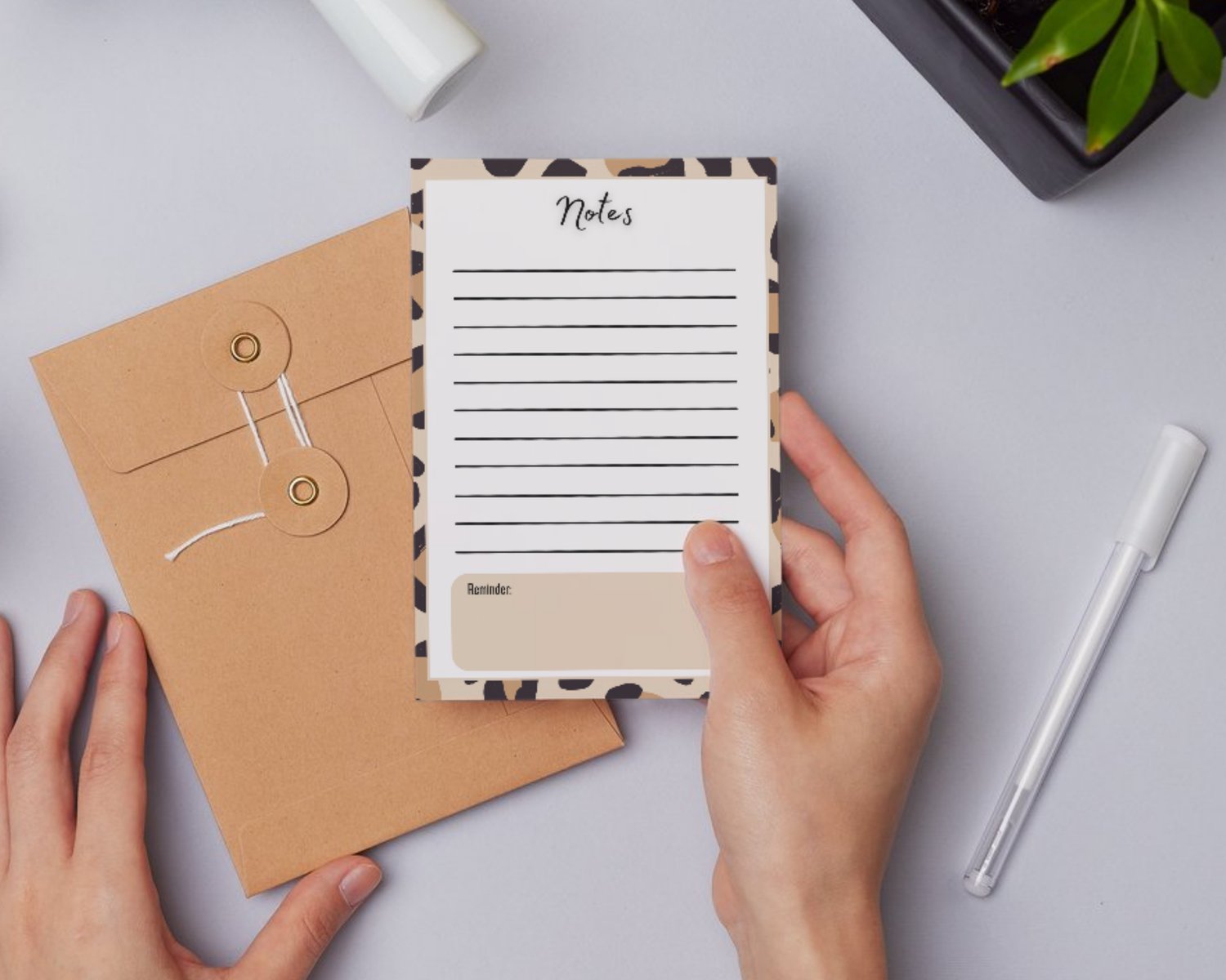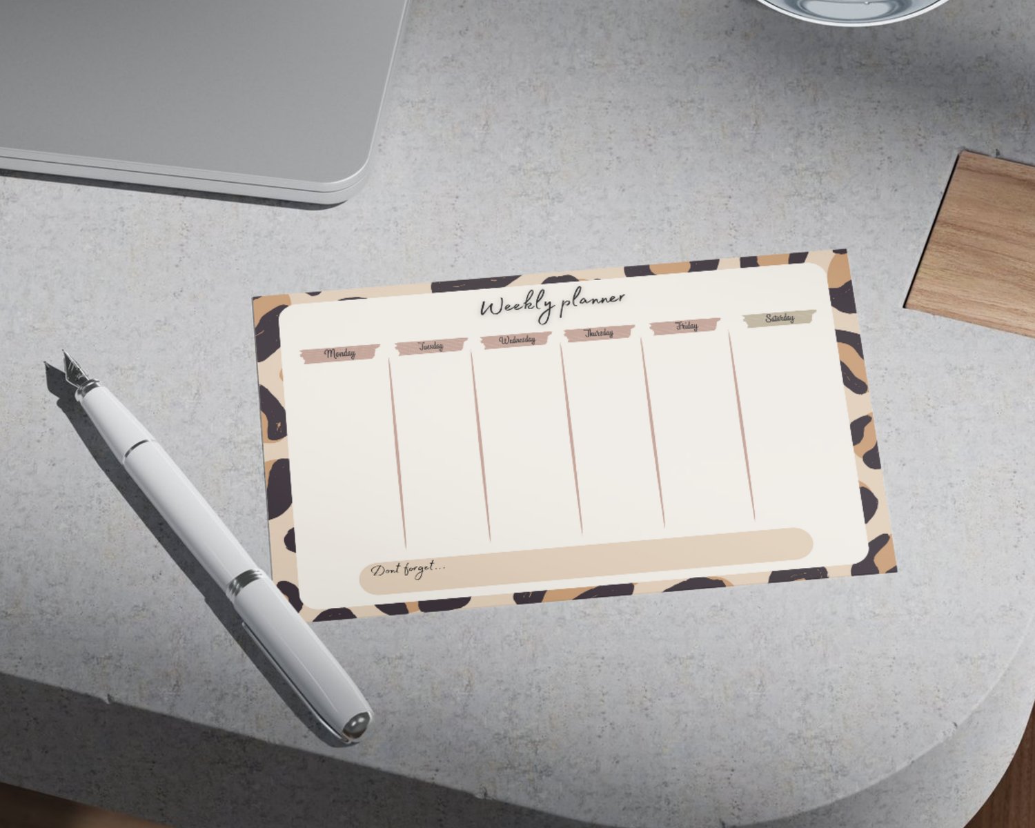 stay organized in style with our new chic leopard set of weekly planner and notes paper.