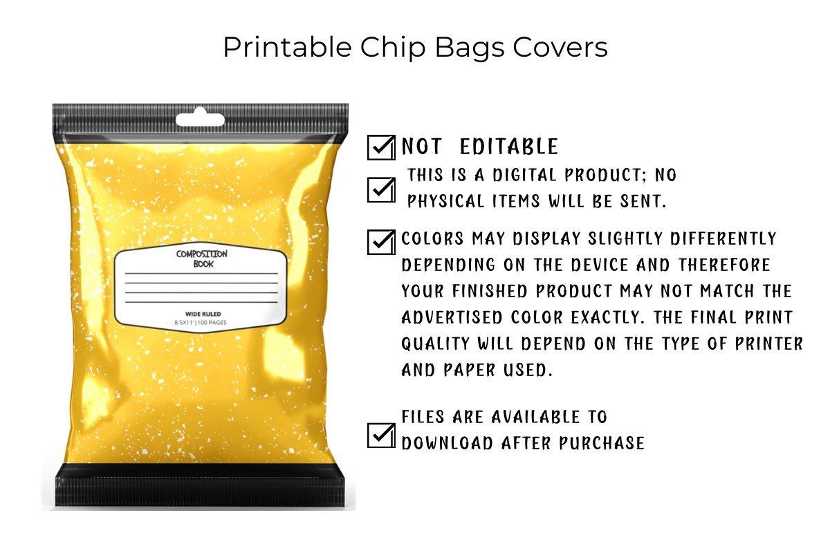 • 24 printable chip bag cover (8.5x11 PDF)