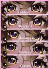 You get a transparent PNGs of the eye textures, there over all together 17 textures of a variety of colors in each files! Fun to mix and match with and can be easily edited onto any head base!
