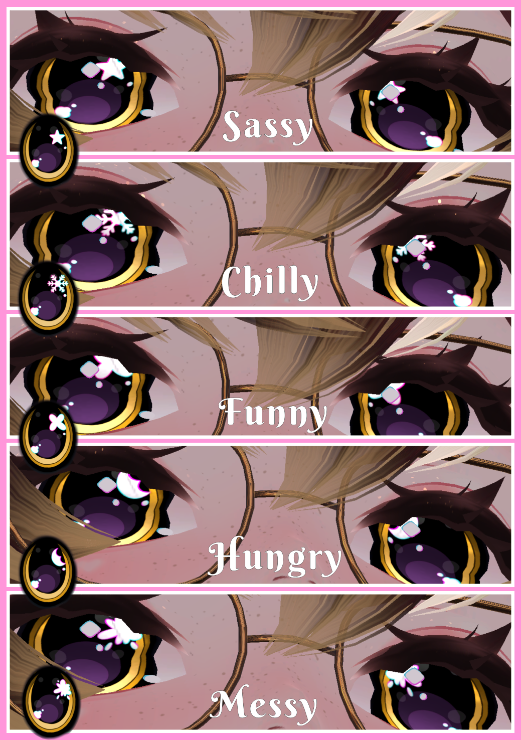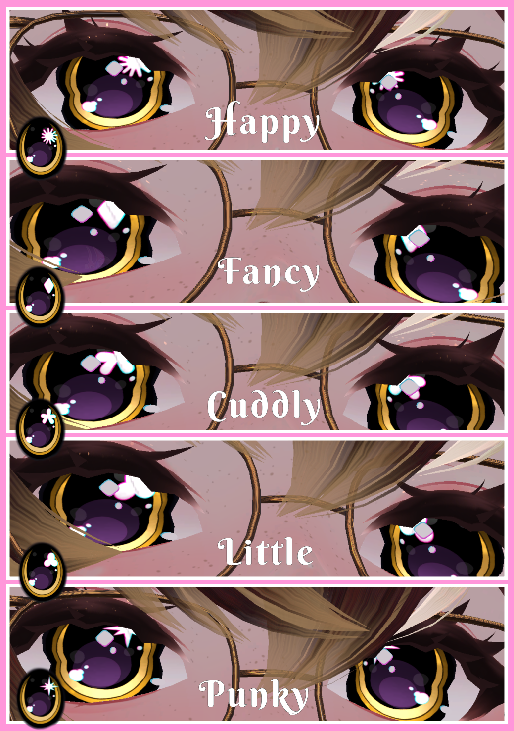 These are eyes inspired by the popular vintage toy Littlest Pet Shops, based on Gen 1 and Gen 2, they have different eye shapes, fun fact were based off their personalities of the pets, and in the files you will get the official and classic inspired eyes, which were; cuddly,fancy,sporty,messy,sassy,funny,hungry,punk,happy,little,chilly, and friendly, I additionally made custom ones! Which are gloomy,bolty,dizzy,saddest, and classic!