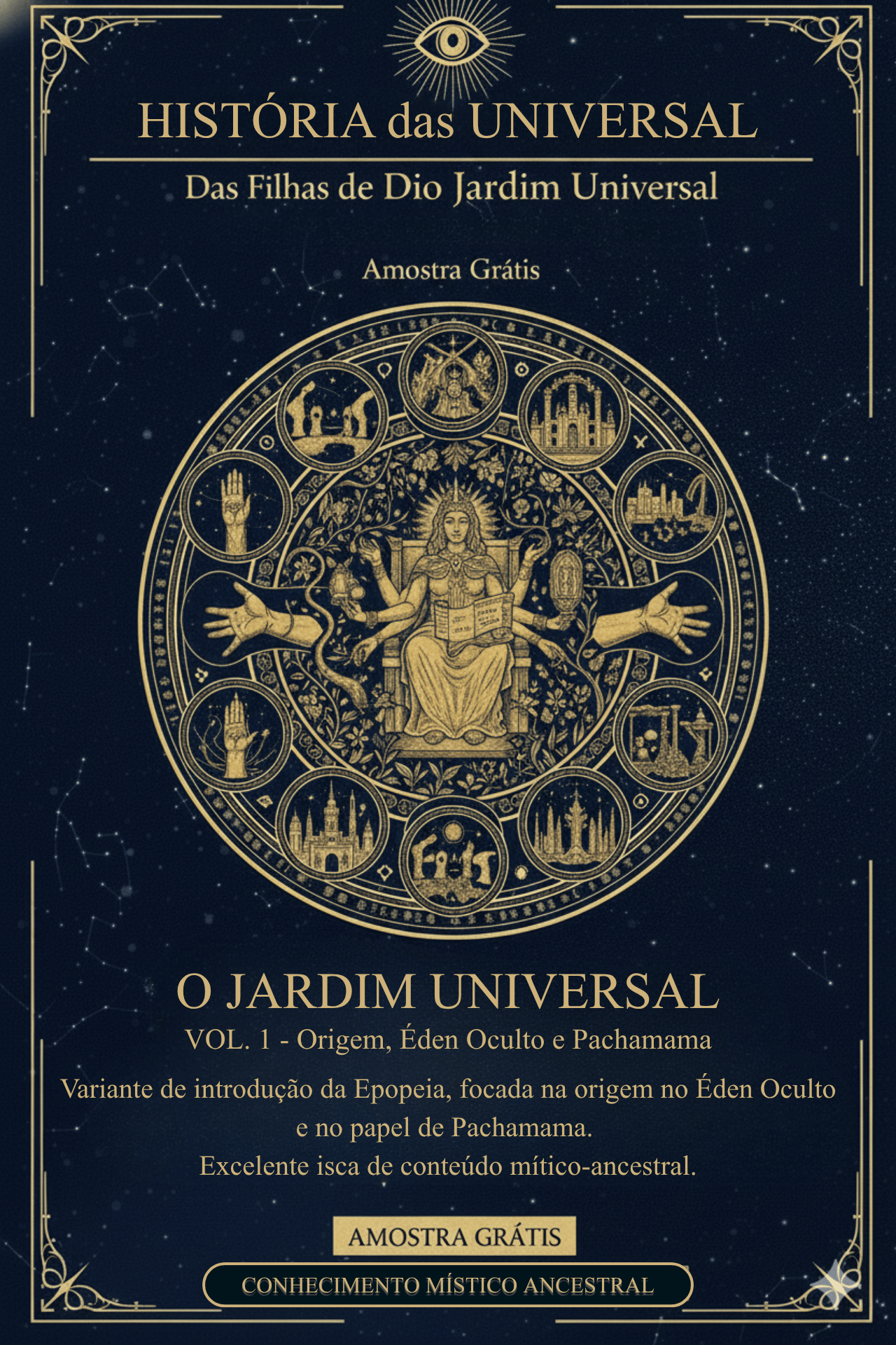 O texto descreve um Éden oculto, a formação de uma raça híbrida e a aliança entre povos primordiais e divindades sob o pacto do Criador Supremo.