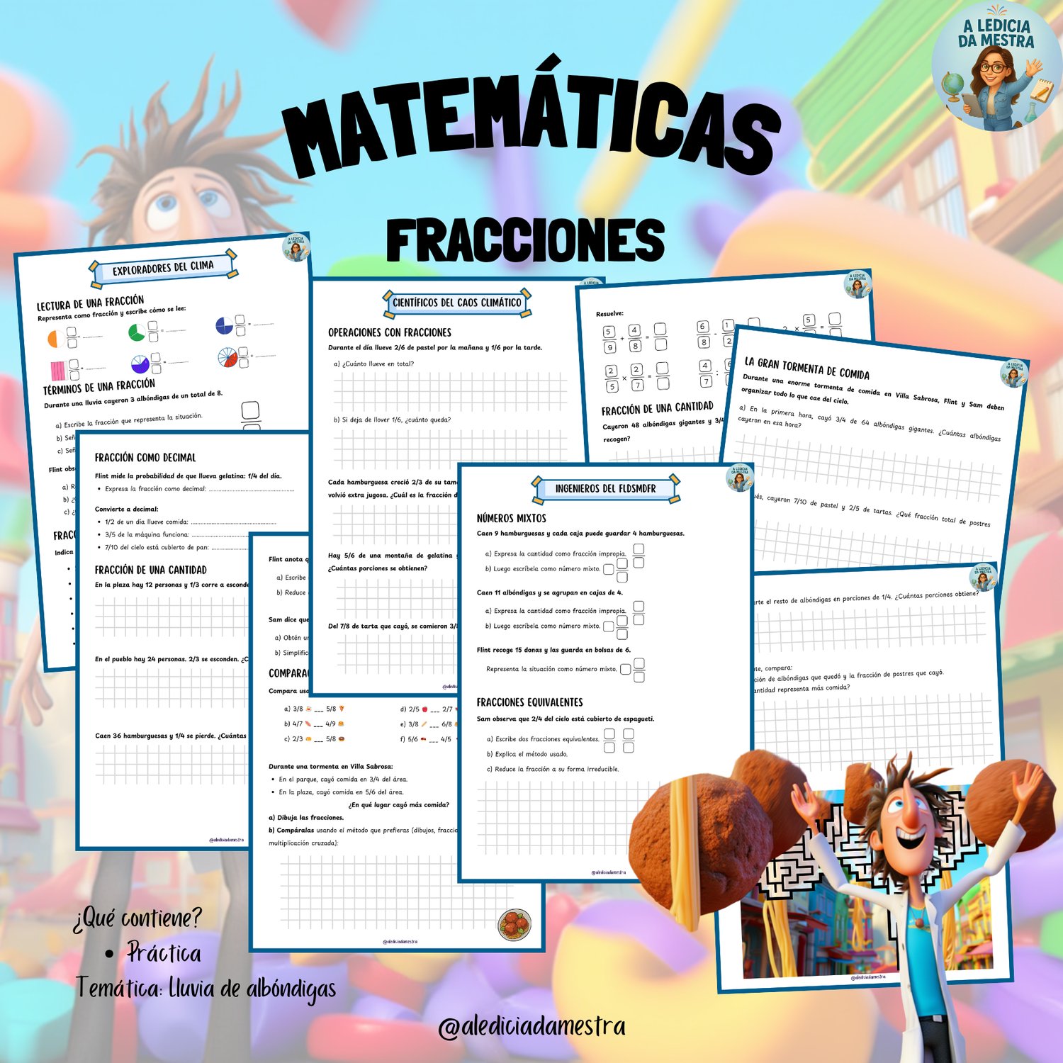 Convierte la lluvia de comida en fracciones con este pack de actividades: