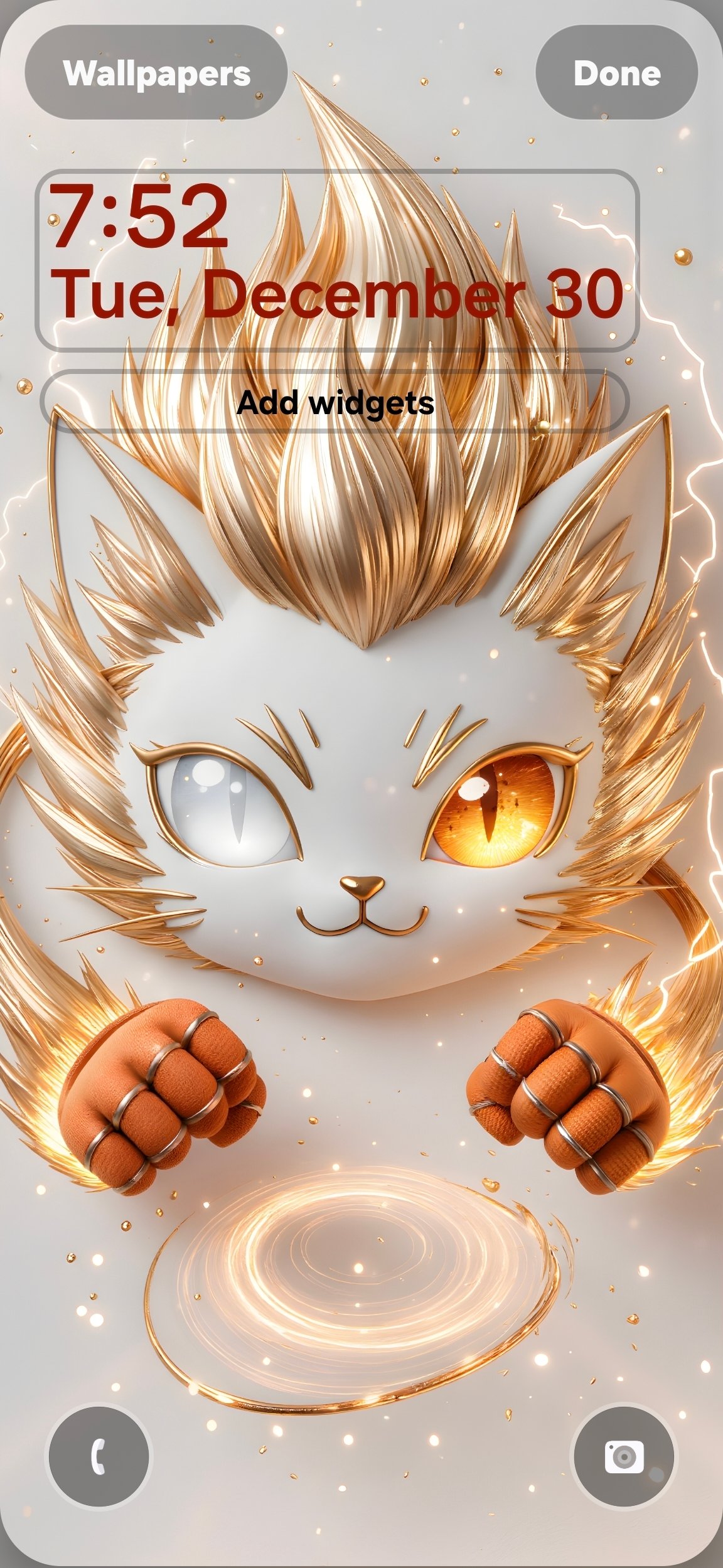 Unleash calm power with this ultra-detailed 4K live wallpaper by MpressPrintz, featuring a glowing golden kitten radiating controlled energy and light.