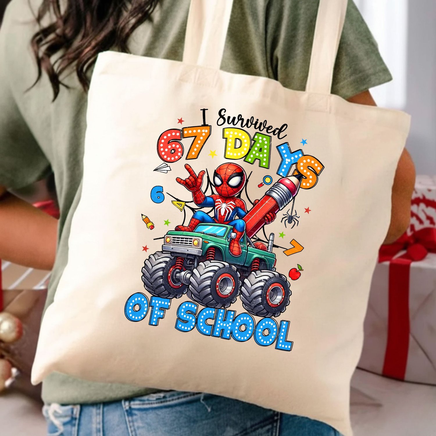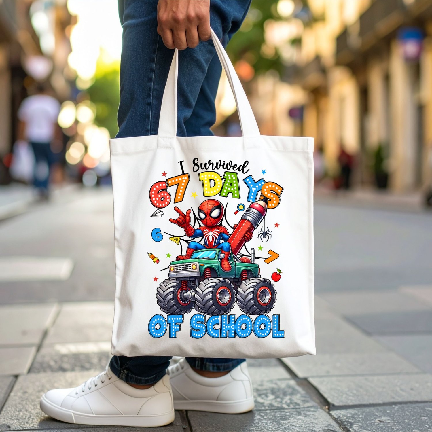 Celebrate academic resilience with our thrilling "I Survived 67 Days Of School" PNG design! This high-resolution graphic is bursting with adventure, featuring a beloved superhero character riding a powerful monster truck while holding a massive pencil. The vibrant colors and dynamic artwork make it an absolute favorite for young students.
