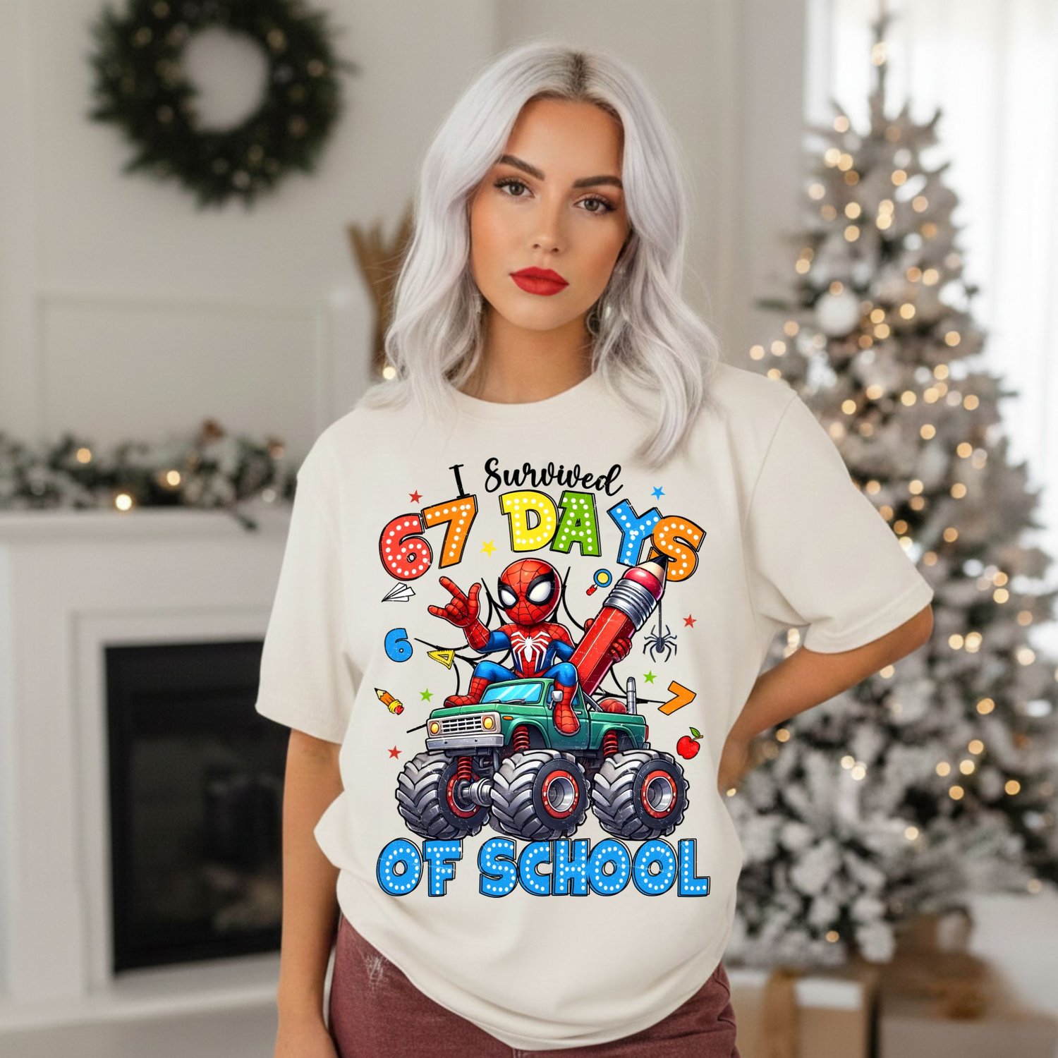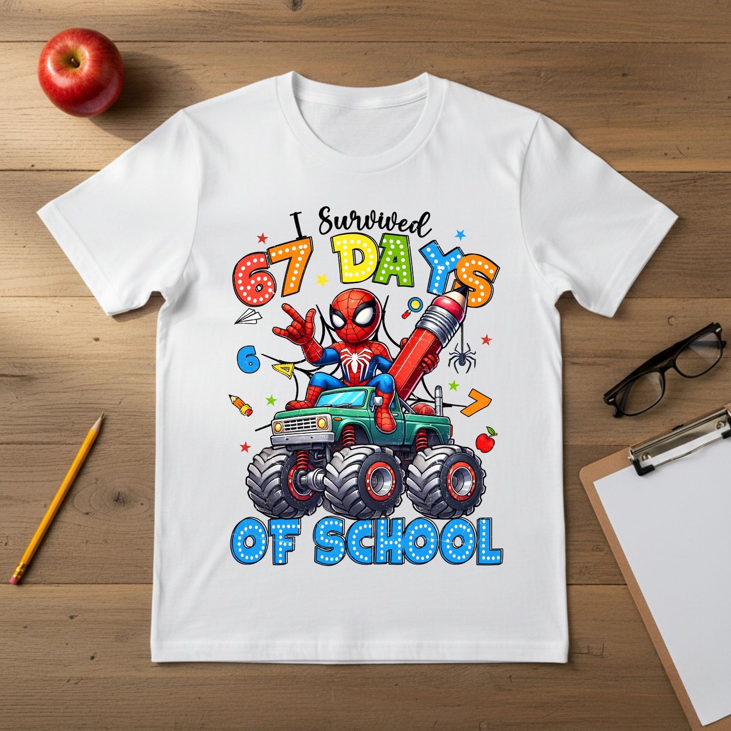 I Survived 67 Days Of School PNG, Monster Truck Superhero Sublimation, Six Seven School Day Celebration, Boys Back To School Tee, Digital File