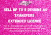 This is a listing for upto 5 designs to be printed and sold as transfers. Please state your registration number in the notes when purchasing a design to go with your license.