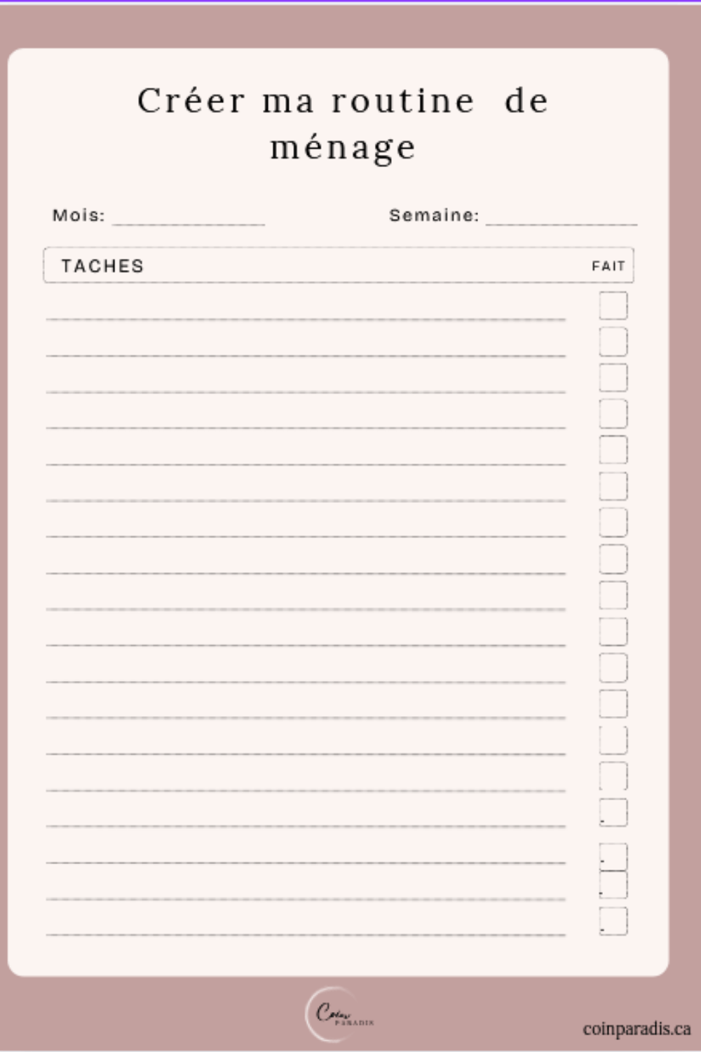 Tu veux une maison propre sans te sentir dépassée ? Ce planificateur t’aide à construire TA routine, selon ton horaire et ton énergie du moment.