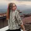 This cocoon shrug worked in a simple mosaic stitch with an eye-catching effect that reminds me of that view.