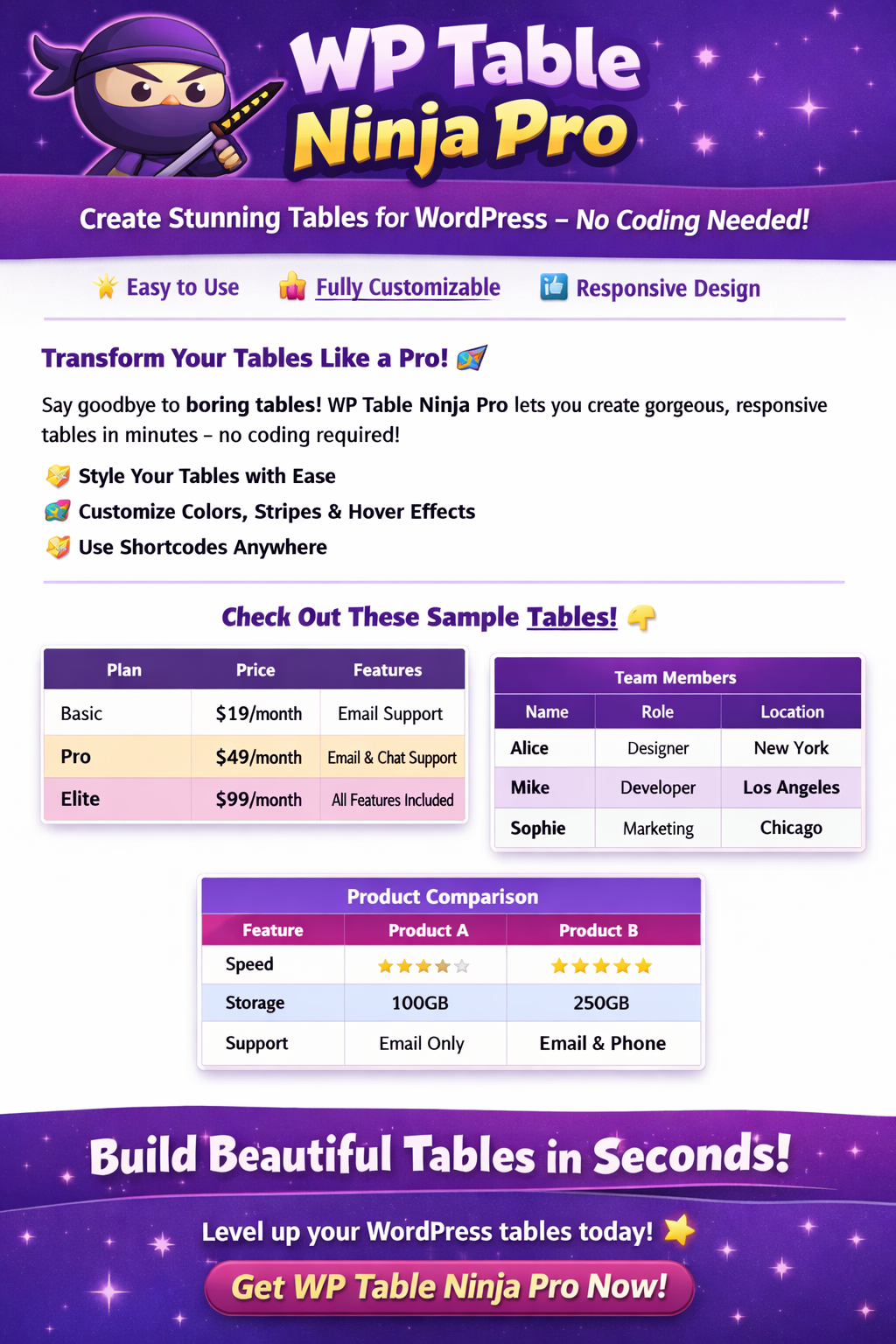 🎉 Transform your WordPress tables into stunning, professional designs without coding! 🎨