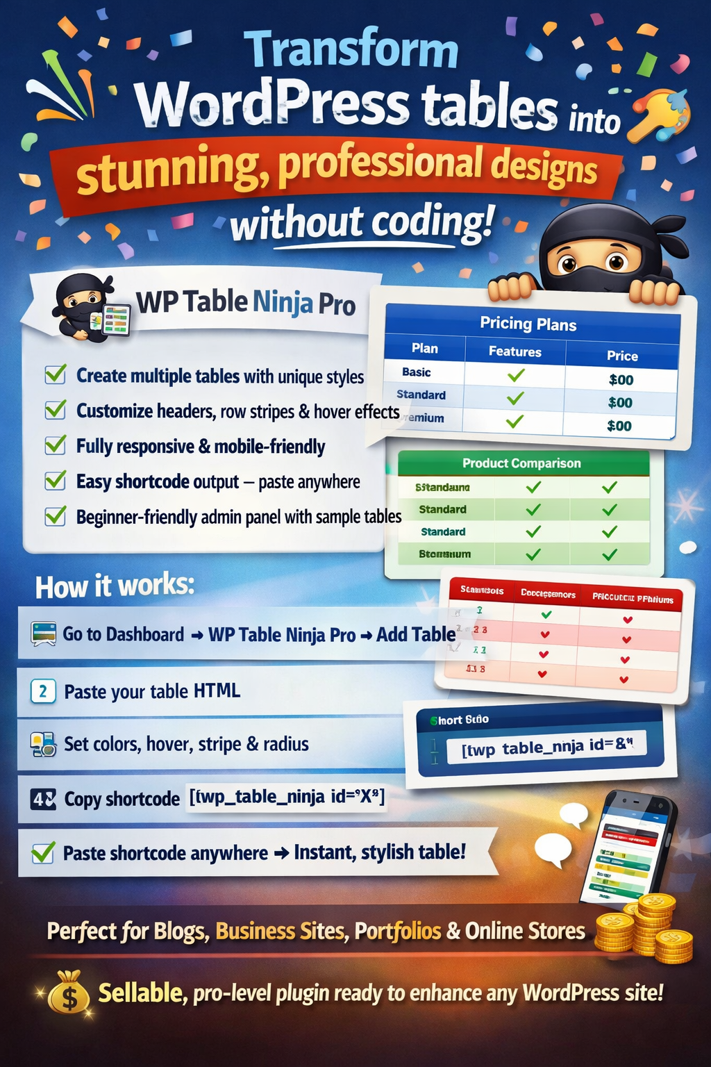 Perfect for blogs, business sites, portfolios, or online stores. Make tables look premium instantly!