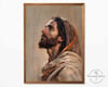 Painting of Jesus 5 in ochre, brown and orange pastel colors, Christ in Impasto, Alla Prima Oil Paint style. Digitally made. Suitable for any interiors or exteriors. Unique painting not found anywhere else. Excellent gift for all occasions. High resolution image 8400x12000 pixels with 300 ppi