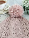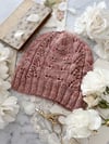 Second sample shown knit in Eden Cottage Yarn Milburn 4-ply, 85% Bluefaced Leister wool, 15% silk, 218 yds (200 m) per 1.75 oz (50g), colorway Althaea, held double with Eden Cottage Yarn Eldwick Lace, 72% superkid mohair 28% mulberry silk, 459 yds (420 m) per 1.75 oz (50g), colorway Apricot Tulip