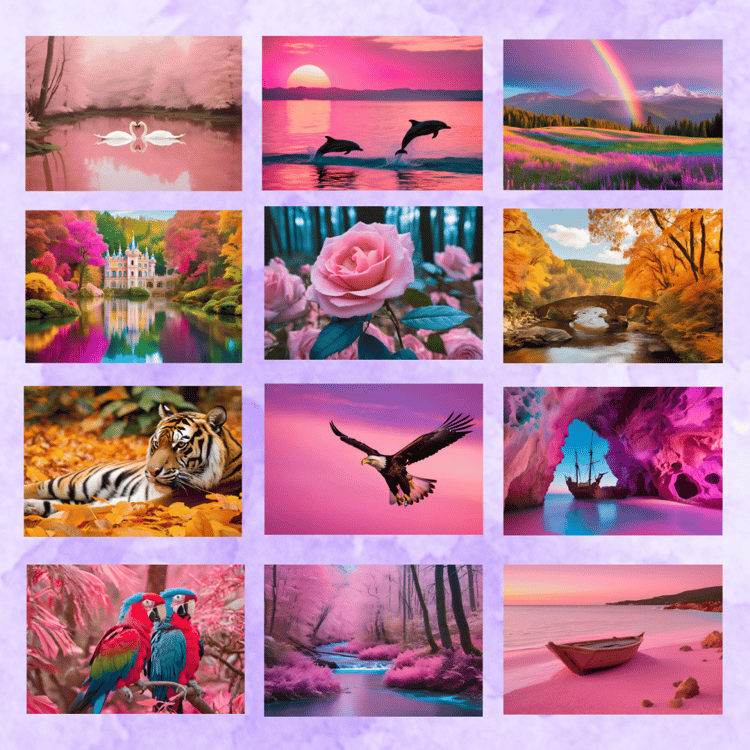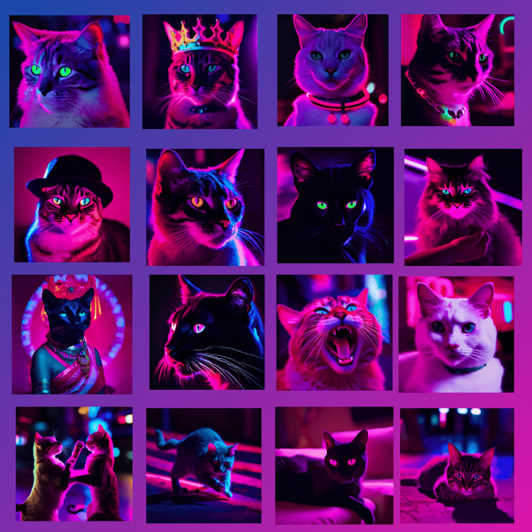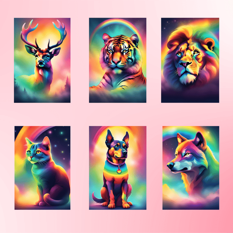 The combination of tigers and neon art is a brilliant way to infuse energy and dynamism into your space. Each image can feature different artistic styles and color schemes, from the cool blues and purples that evoke a sense of mystery and nighttime allure, to the warm oranges and pinks that convey a sense of warmth and excitement. The squared format of these images ensures they fit seamlessly into any design layout, whether you choose to display them as a cohesive gallery wall or as standalone statement pieces.