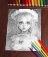 A beautiful adorable fairy darling with great detail for coloring. This is a beautiful and detailed illustration set for your coloring joy made by The Botanical Nook (TheBotanicalNook)! Coloring is such a fun activity to create your own, unique and beautiful works of art. You can instantly print it on your home printer and go right to coloring. Made a mistake? No problem! You can print it out again and start over.